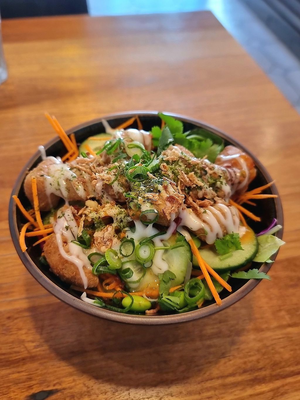 Really well served and the price is super fair. The staff is also really kind. I love this place!!! I’ve been there a few times already and will definitely come back other times. It’s so good to know that they are 100% vegan 💚 this meal on the bowl on is the Crispy Vegan Duck Poke Bowl, it was so delicious that I couldn’t take the photo before start eating 😬 they have some snacks on the counter and I always buy some because they are really good too, last time I bought the peanut brittle and it’s just amazing!
