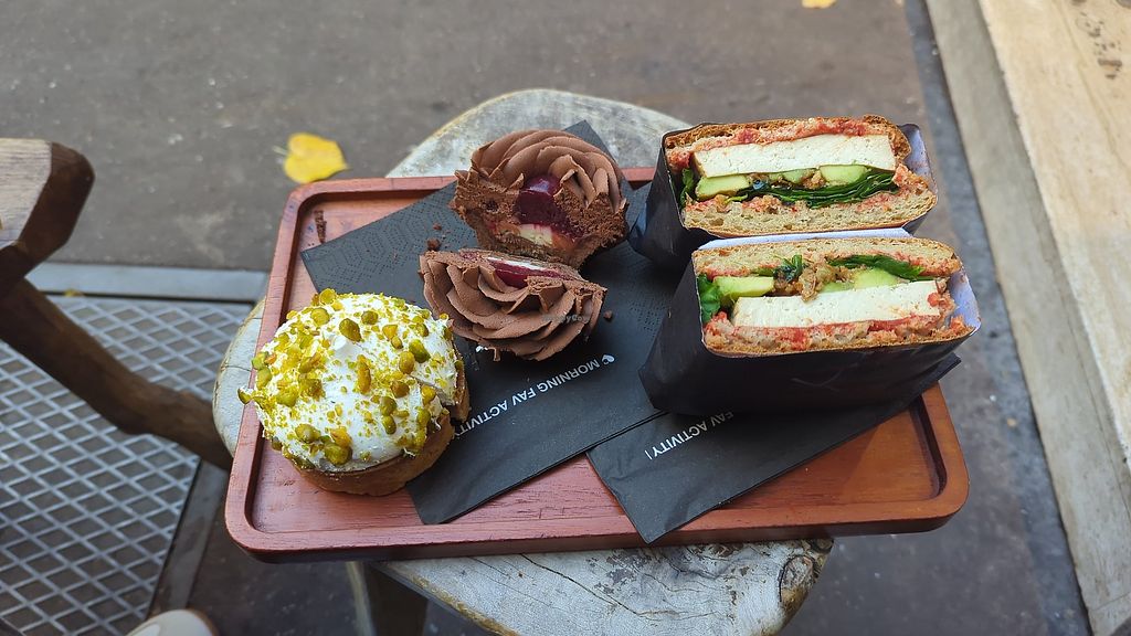 Petite boulangerie avec choix de viennoiseries vegan ainsi que de pâtisseries. C’est sans gluten. J’ai pris une pâtisserie à la pistache, bon mais pas excellent au point de justifier le prix (9,50 euro par pâtisserie !)