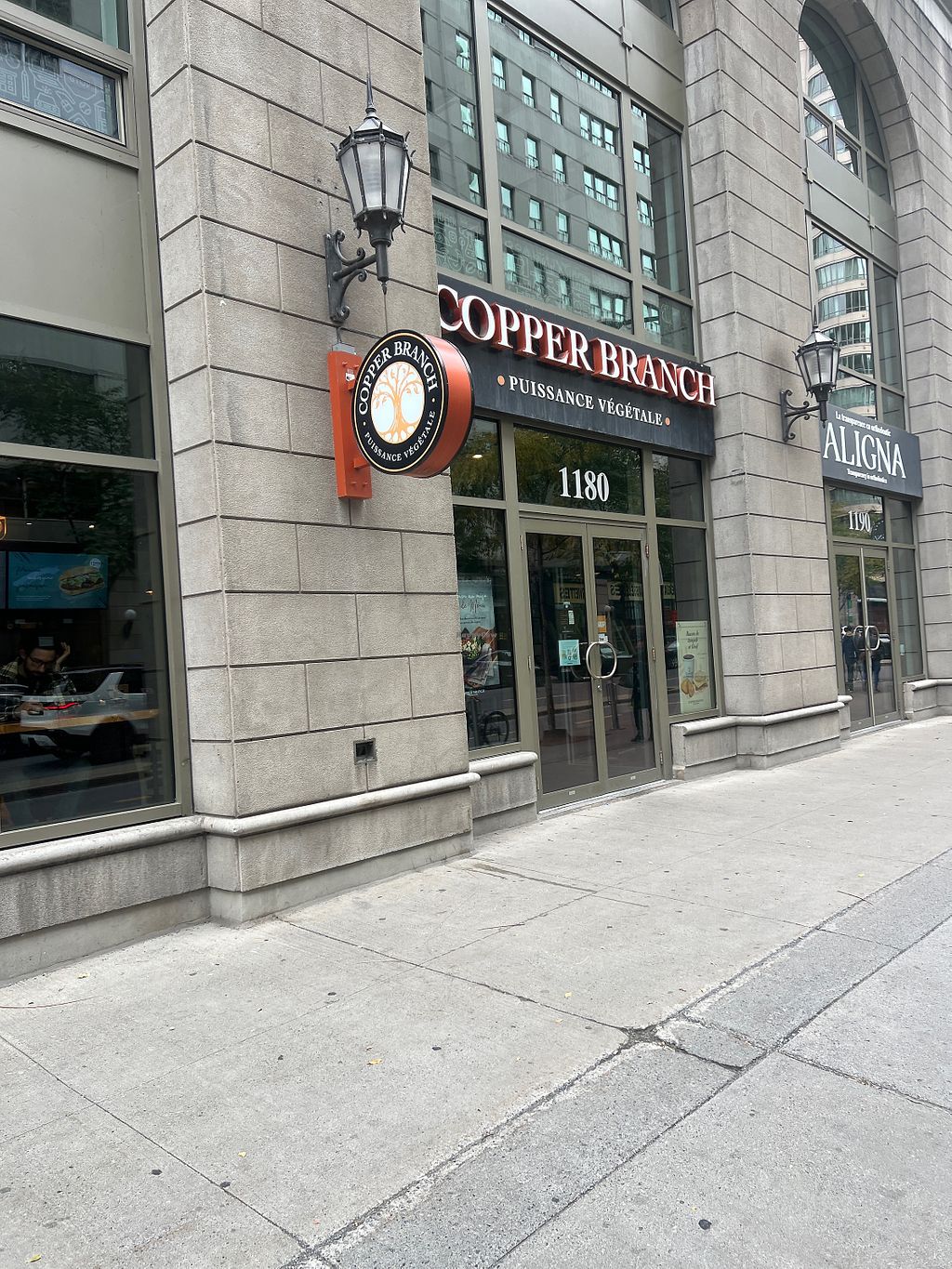 I really want to love copper branch but at some point it became really slimey. I don’t know if it’s the type of oil they use or something but on paper these bowls should be fantastic BUT whenever I order one the consistency of far off ( too cold when it should be hot or sat in a chair for an hour warm for things that should be cold ) and has that weird slime consistency that feels like you are swallowing phlegm. With a few tweaks this place would be perfect but I dunno. Not sure what makes it feel like the food has been sitting out on a counter for three hours but it never tastes fresh either. The only thing I can think of is … THE AIR CONDITIONER. It’s always jacked up to the maximum and maybe it messes with the food? I dunno, please fix this CB because I really don’t wanna see Montreal loose another vegan place to eat.