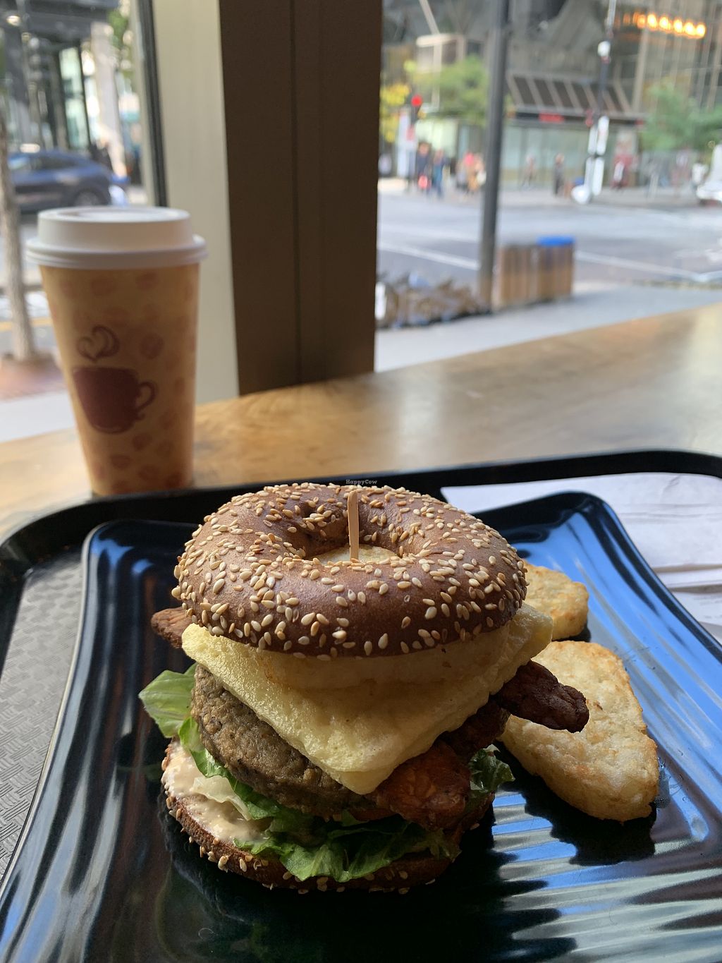 Discovered their Just egg and tempeh English muffin on my second day of my week vacation and it has been my first stop every morning. Then I discovered the cheesecake which is by far the most convincing vegan cheesecake I have ever had. Worth the splurge.