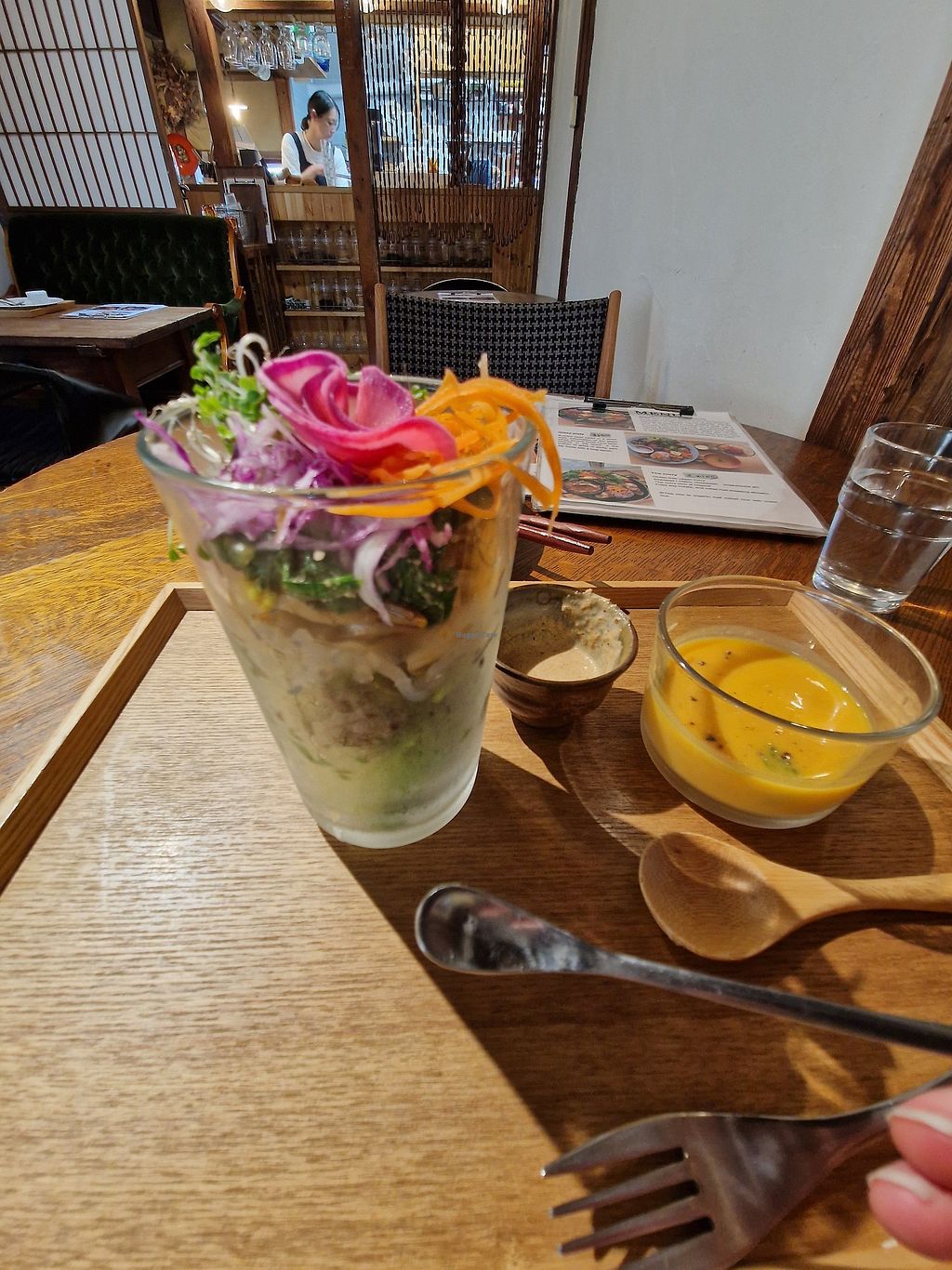 I had the very delicious Buddha bowl for 2000¥. The restaurant had a very authentic Japanese feel to it and the staff were super friendly. Would recommend 100%.