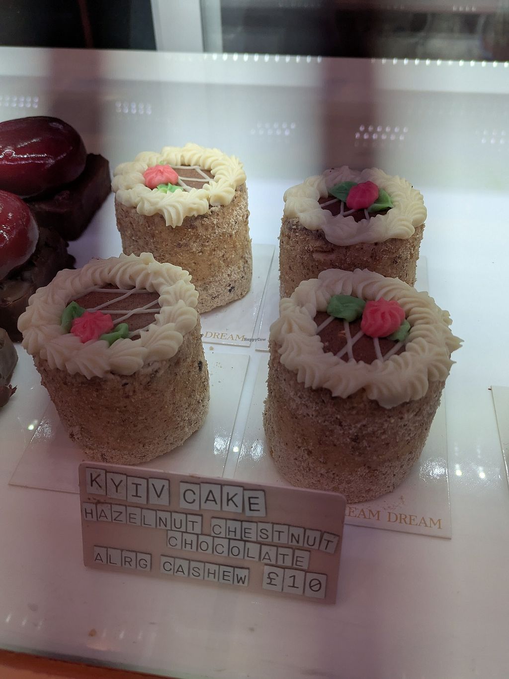 Ukrainian vegan pastry café. Serves gluten & sugar free desserts & pastries such as eclairs, cakes, macarons and tarts. Also serves Ukrainian tea and specialty coffee. Also offers some savoury food like dumplings and vegan Kyiv five days of the week. Animal friendly. Open Mon-Wed 08:00-20:00, Thu-Fri 08:00-21:00, Sat-Sun 08:30-21:00.