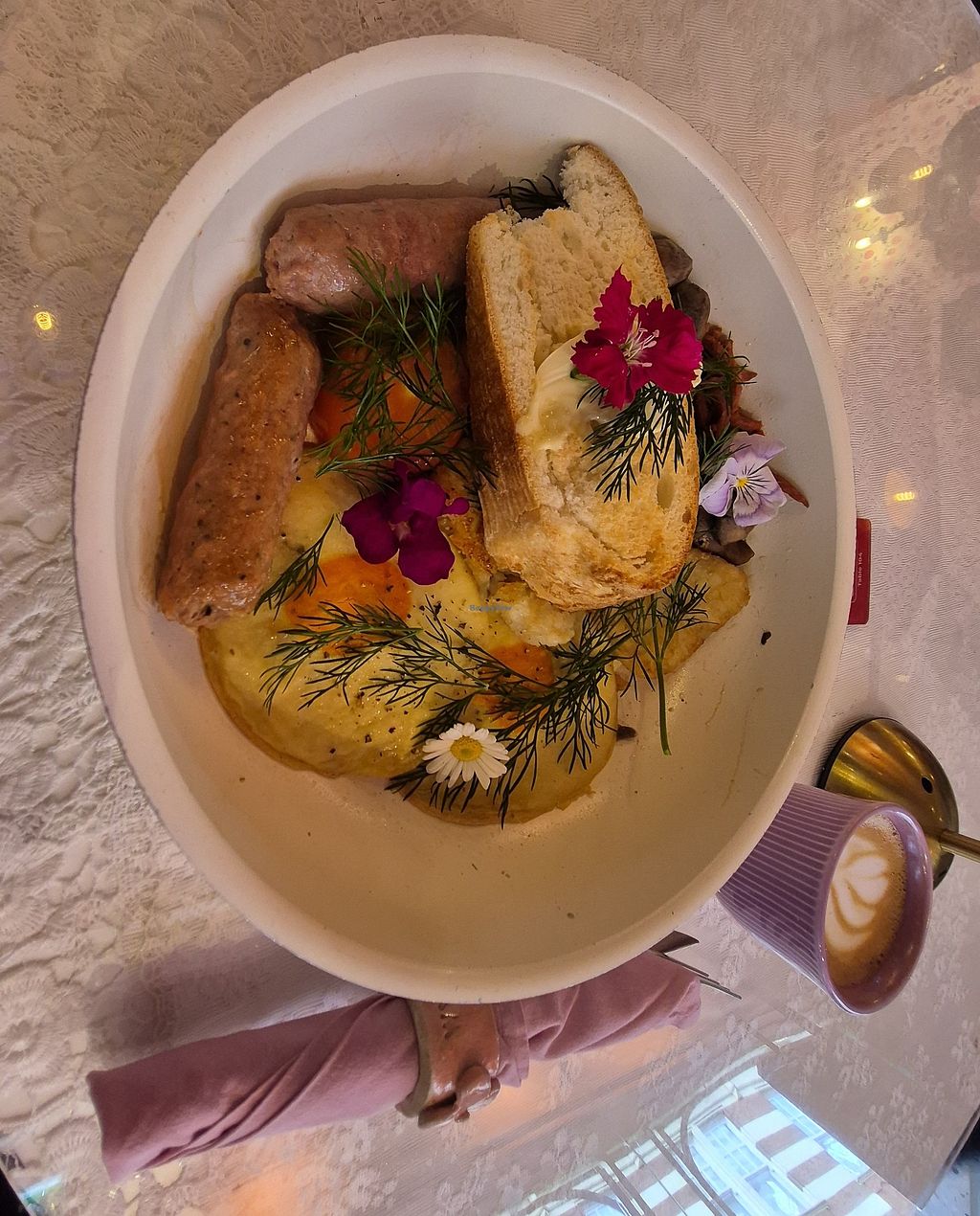 Never had a vegan Full English with vegan fried eggs and flowers, but I have now. Wow!