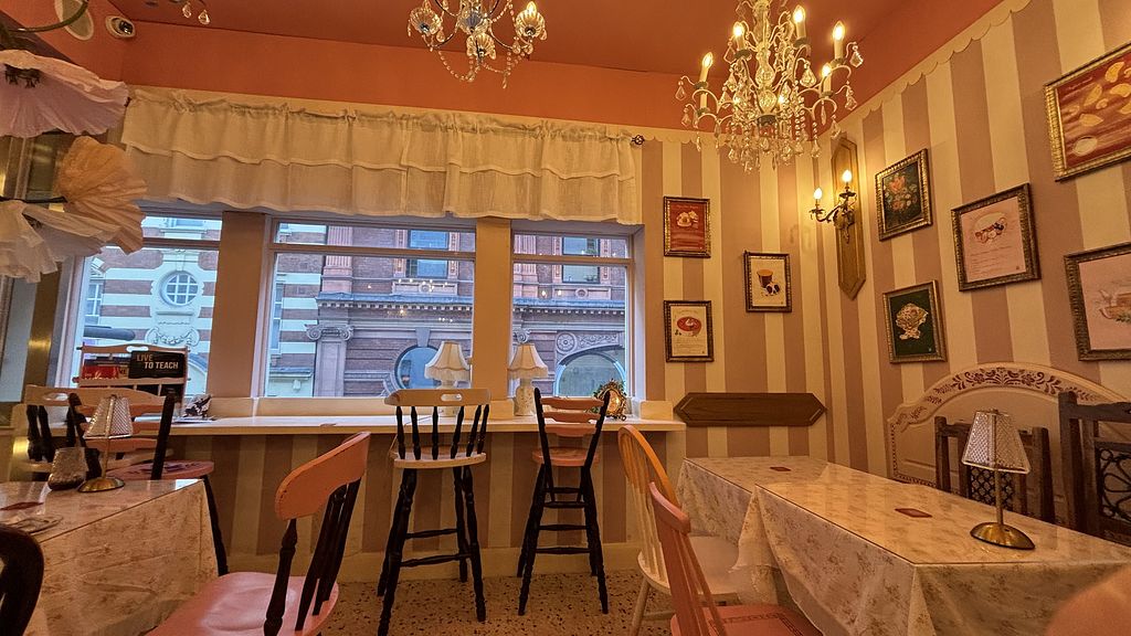 Read moreA few tables upstairs to sit as well as a bathroom. The decor is very cute, the vibe was very much fancy British high tea. QR-code at the table for the menu, ordering and paying. Pick up at the counter downstairs.
