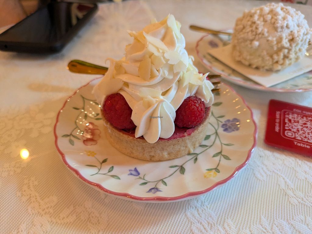 Cherry chocolate cake: fresh black cherry, cherry tea cream and chocol…