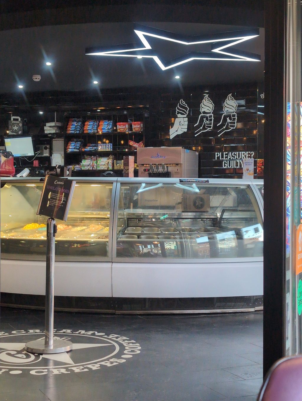 Franchise chain of American diner style dessert cafes in the UK. Serves gelato ice cream, waffles, sundaes, milkshakes, cookies, smoothies, coffee, tea, and crepes. Introduced a vegan menu in 2019 - ask for it. Choices include a selection of sorbets, chocolate chip cookie dough scoops, crepes, waffles and shakes. Open Mon-Sun 11:00-22:00.