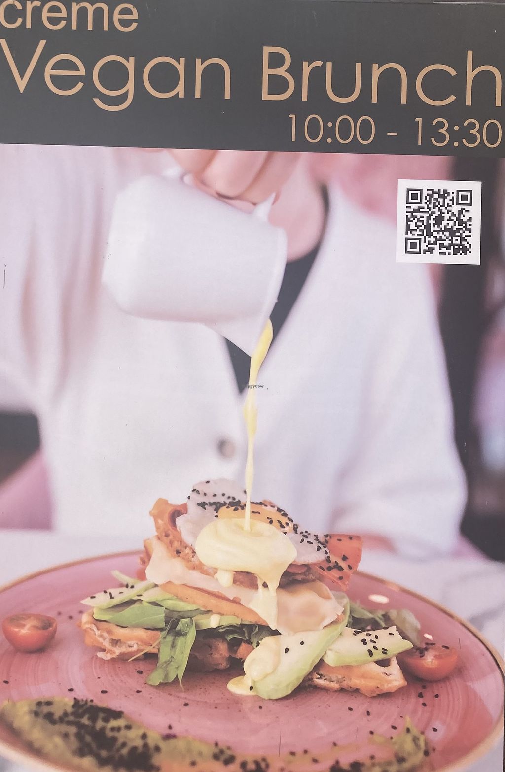 The Creme vegan Brunch menu is fabulous. I usually opt for the green smoothie and the waffle stack - which includes avocado, vegan cheese, vegan bacon ... even vegan fried egg, smothered with tasty savoury creamy sauce. Highly recommended 👌