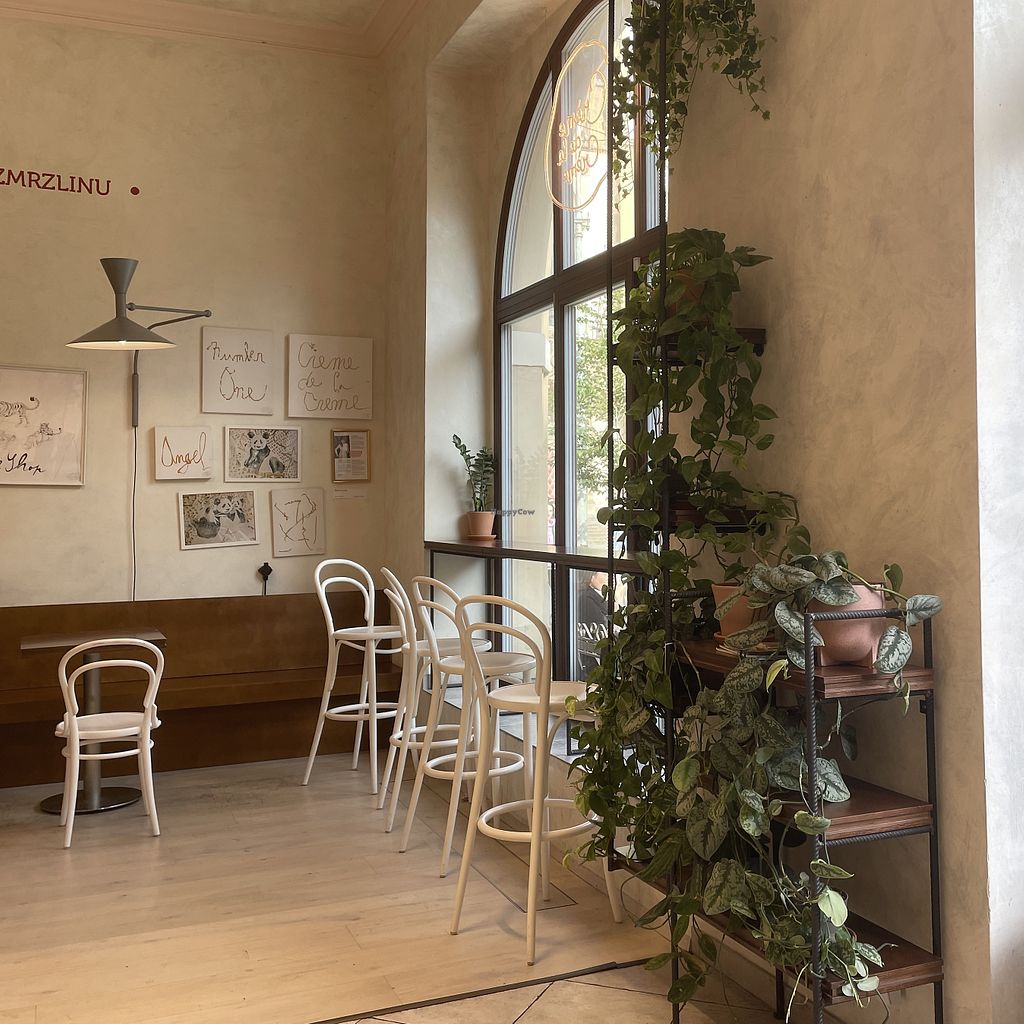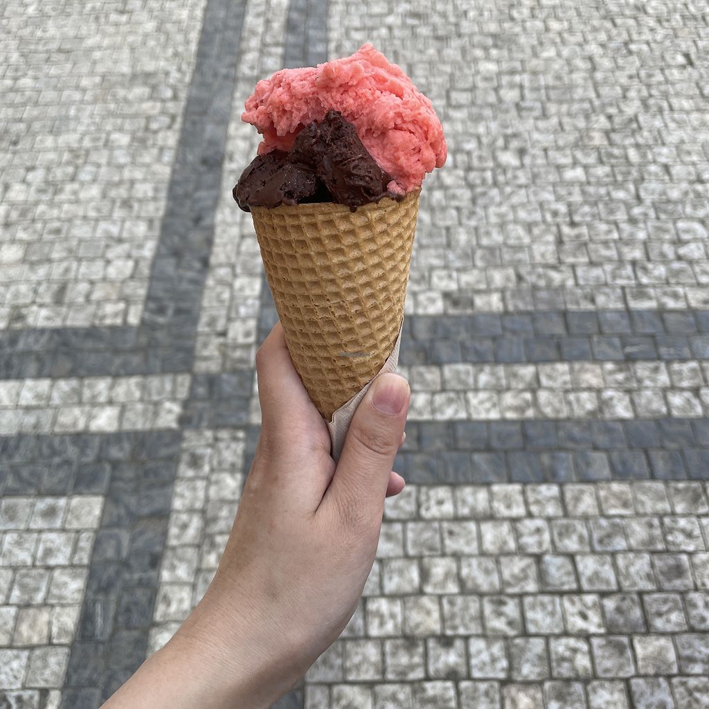 Great ice cream — there were 3 flavors of vegan ice cream all the sorbets. I really liked the combination of vegan dark chocolate and raspberry. The waffle cones are also vegan. The portions are large, and even the small size lets you choose two flavors. You can sit both inside and outside. There’s usually a line, but on weekdays the wait is no more than 5–10 minutes.