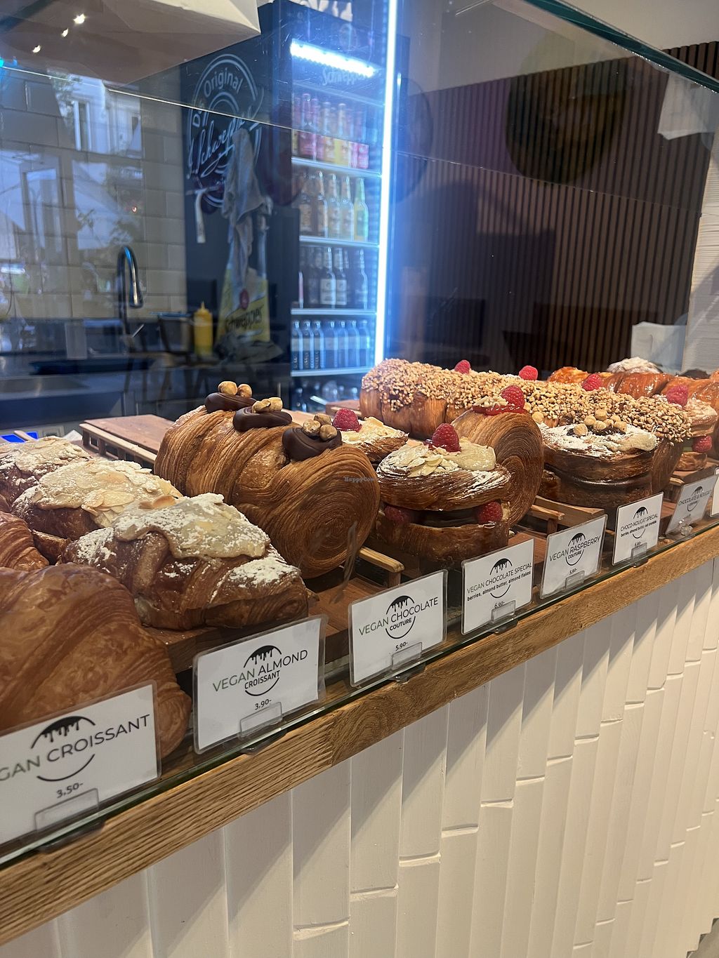 Had the vegan raspberry. It was crunchy, buttery and flakey. All you want from a croissant(-like) pastry !! the cream was good but slightly bitter due to the raspberries. They also have one vegan savory sandwich if you’re not in the mood for sweet. Even tho it is actually not very sweet, which i personally enjoy! Makes it less heavy ☺️