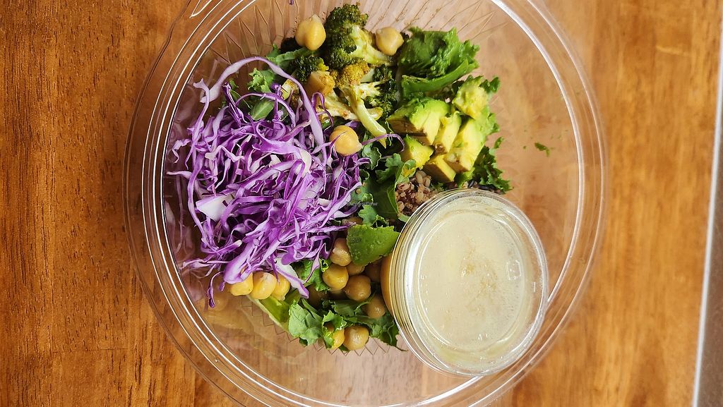 Read moreI got kale and lettuce base with broccoli, red cabbage, chickpea and quinoa. You can choose extra toppings, too.