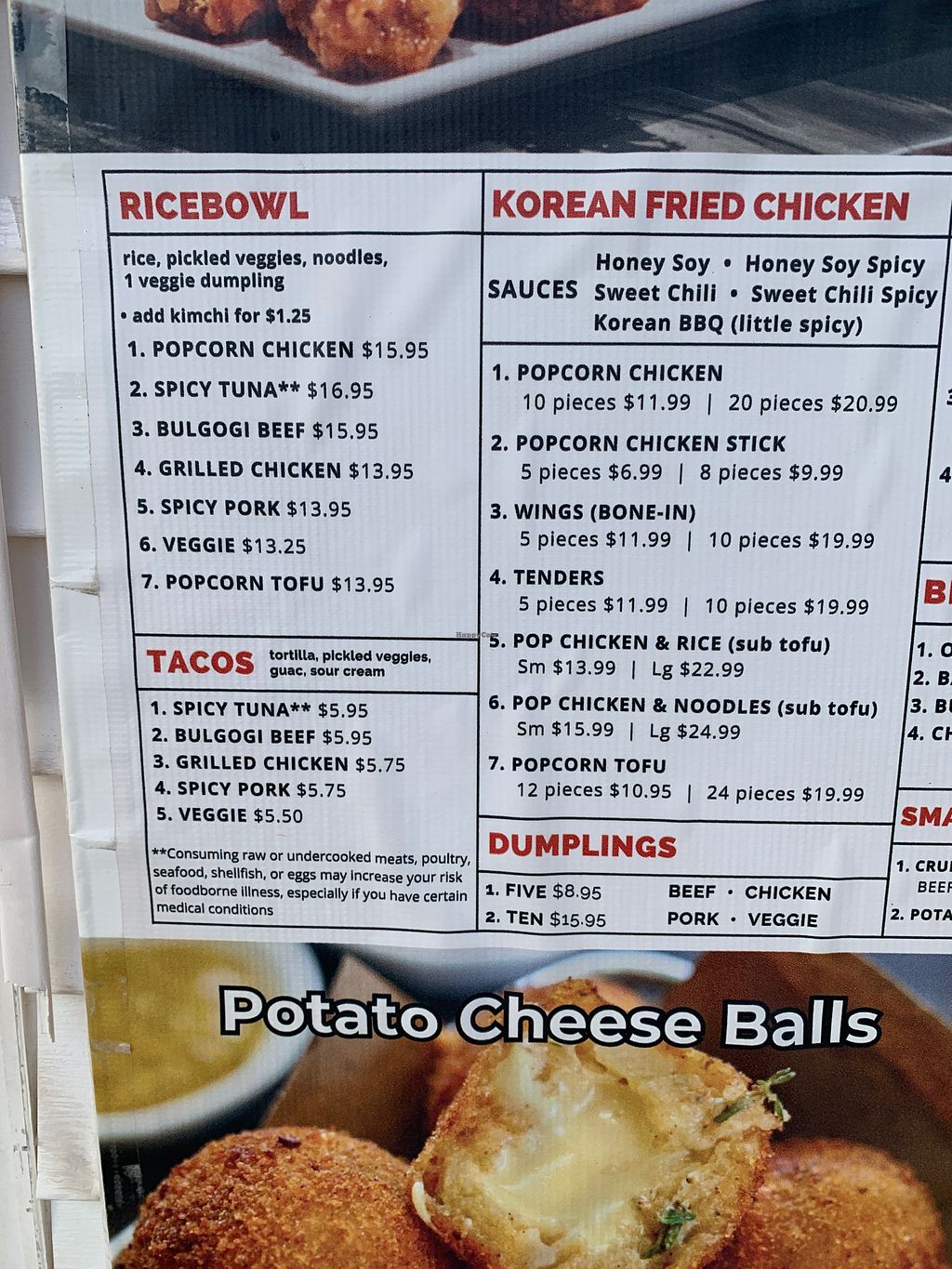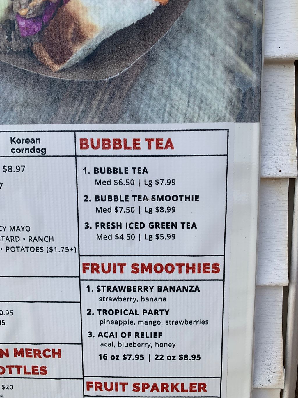 Serves meat, vegan options available. Korean boardwalk location offering vegan items including veggie tacos, popcorn tofu, rice bowls, dumplings, and more. Open Mon-Fri 9:00am-8:00pm, Sat 9:00am-9:00pm, Sun 9:00am-8:00pm. Closed during off season, reopens in spring.