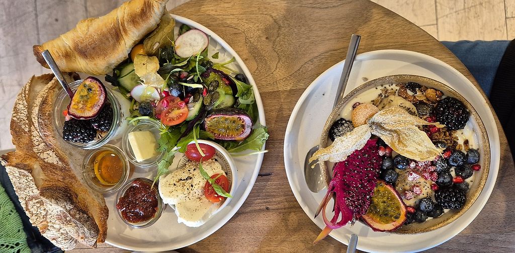 Café opened 2023 with indoor and outdoor dining options. Vegan breakfast choices include smoothie bowls and toast. Serves some vegan milk choices for coffee and matcha. Open Tue-Sun 10:00-17:00.