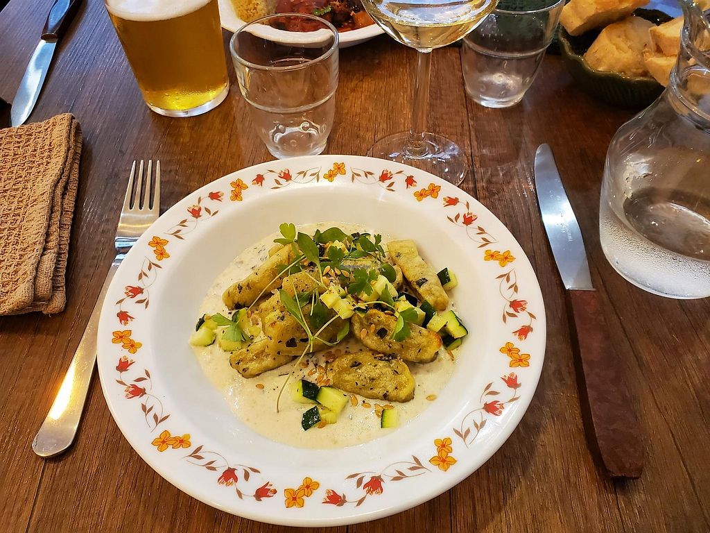 Vegetarian restaurant with regularly changing menu focusing on seasonal and local ingredients. Examples vegan offerings include vegetable plates, gnocchi, vegan cakes, and more. Has gluten free choices. Open Tue-Sat 12:00-14:00, Fri 19:30-21:00. Closed Sun-Mon.