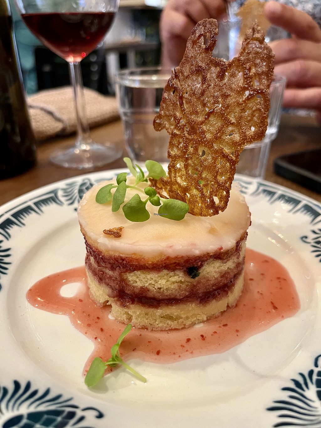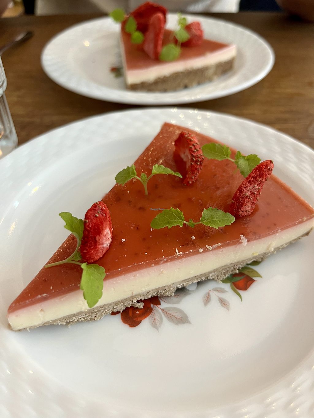 Read moreThere were two main options so we had one of each. B had the aubergine with rice, and I had the polenta, tomato dish. Then B had the strawberry dessert, and I had coconut sponge cake.