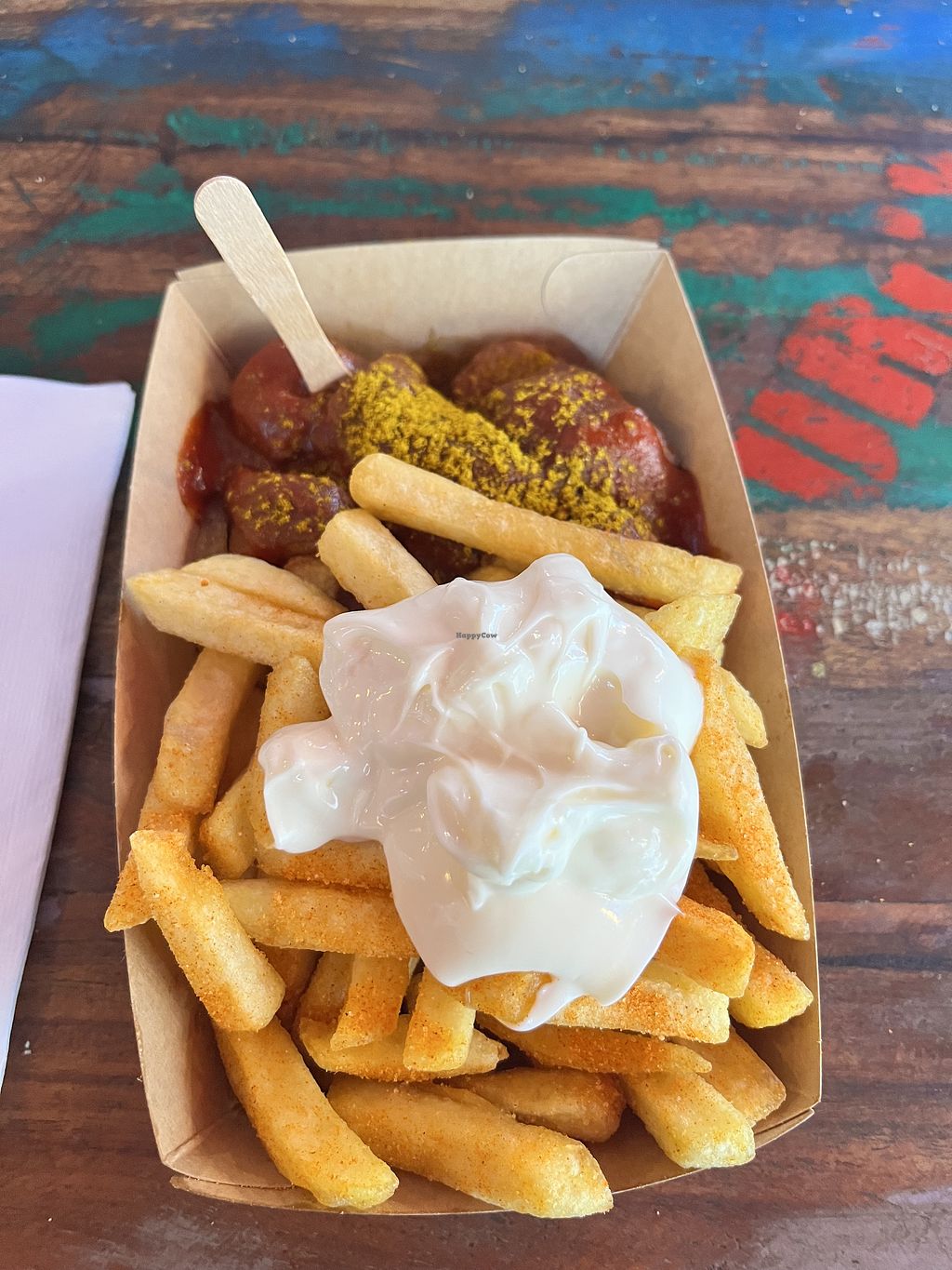 Amazing vegan Currywurst, fries and Mayo. Cant fault it!