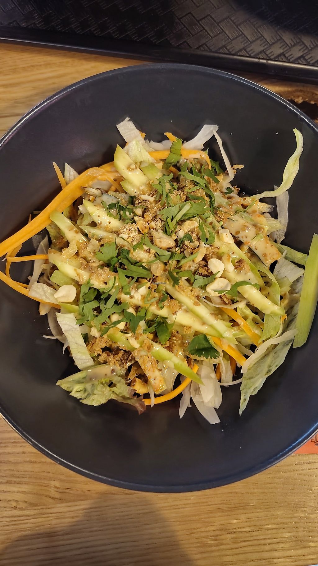 Ich hatte das red curry mit veganer Ente und das hatte echt Potenzial aber in dieser Sauce war sooo viel Zimt drin, ich bin mir nicht sicher ob das gewollt ist. Aber der Zimt hat jeden Geschmack übermannt und ich glaube ich kann nie wieder Zimt essen.