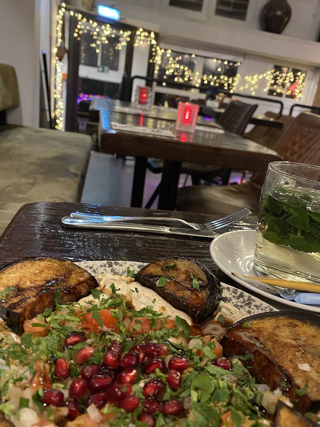 Serves meat, vegan options available. Lebanese restaurant with many vegan choices (traditional breakfast and lunch/dinner items) yet they appear to not be clearly labeled so please inquire. (Please note they serve lamb.) Open Mon-Sun 12:00-22:00.