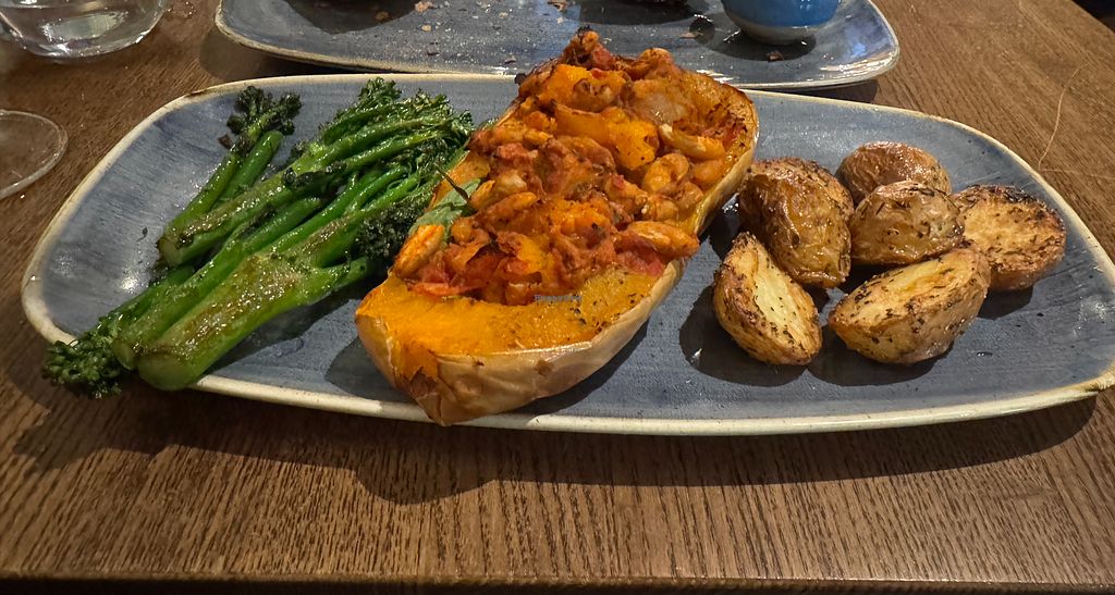 Booked here for dinner with a friend. We both really enjoyed our meals, quiet, friendly atmosphere. They have at least one vegan option for all course / menus. More options would be nice but their menu is quite small all round. I had the stuffed butternut squash, it was very good and the sorbet dessert which was also really good! Would return, would like to see more vegan options though.