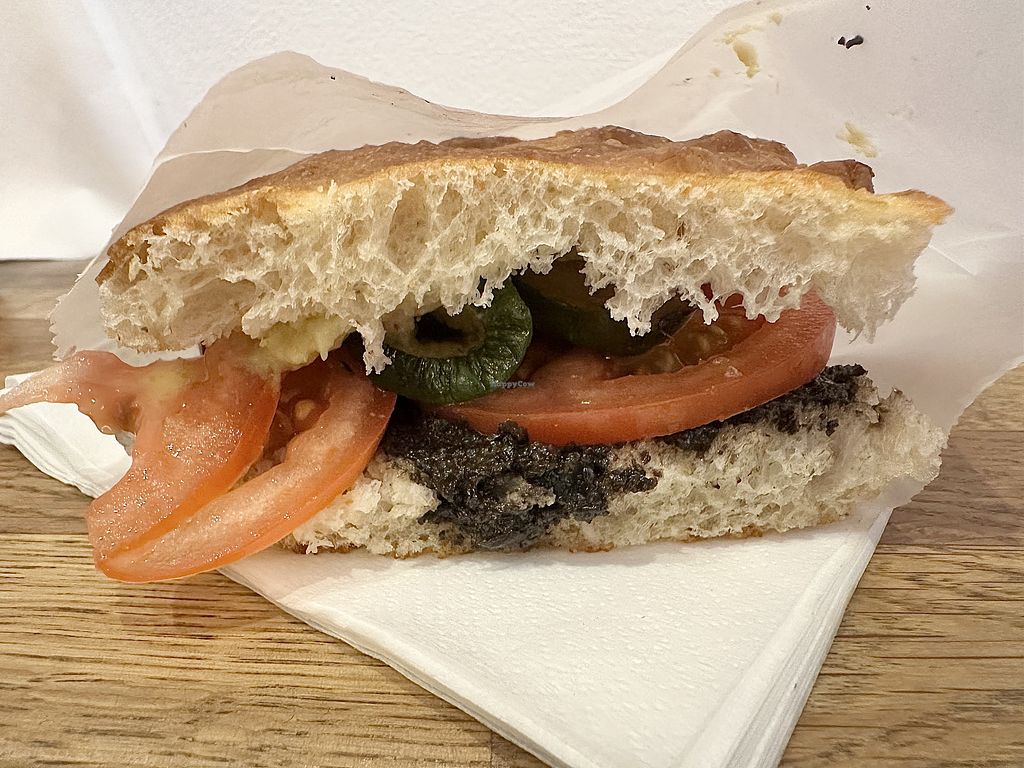 It’s nice they offered two vegan options. I ordered a small sandwich that came with artichoke cream, olive paste, tomatoes, and roasted courgette. I gave 3* because the amount of veggies in the sandwich felt a bit sparse and the flavor was a bit bland — I added more salt to make it more tasty. Only other point to make here is there is basically no vegan protein option. I’ve been to Florence and have had these sandwiches with much more vegan protein, veggies, and flavor, so I was already coming in with a higher expectation.