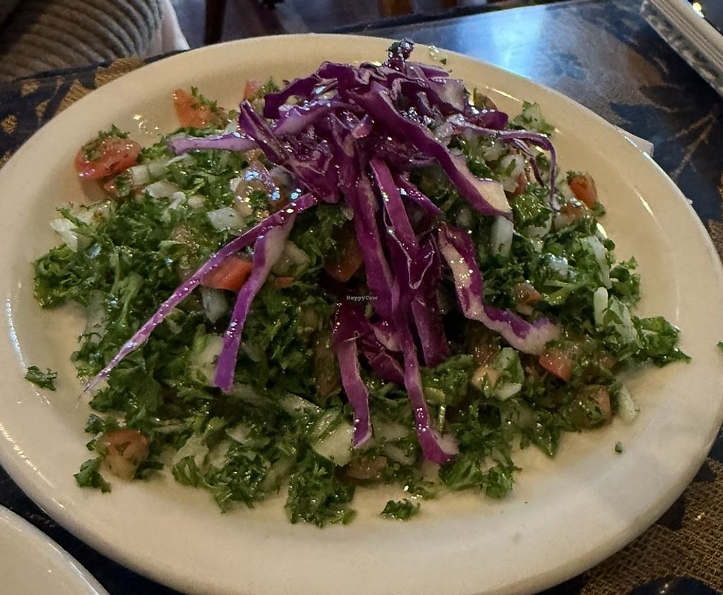 Serves meat but many vegan options available. The lentil soup and falafel mezze platter are great. Fun decor, warm service, delicious beer (Pilsner with rose water!). Beware: the menu lists some things as vegan that contain dairy (like a mezze platter that includes yogurt) and are worth clarifying when ordering.