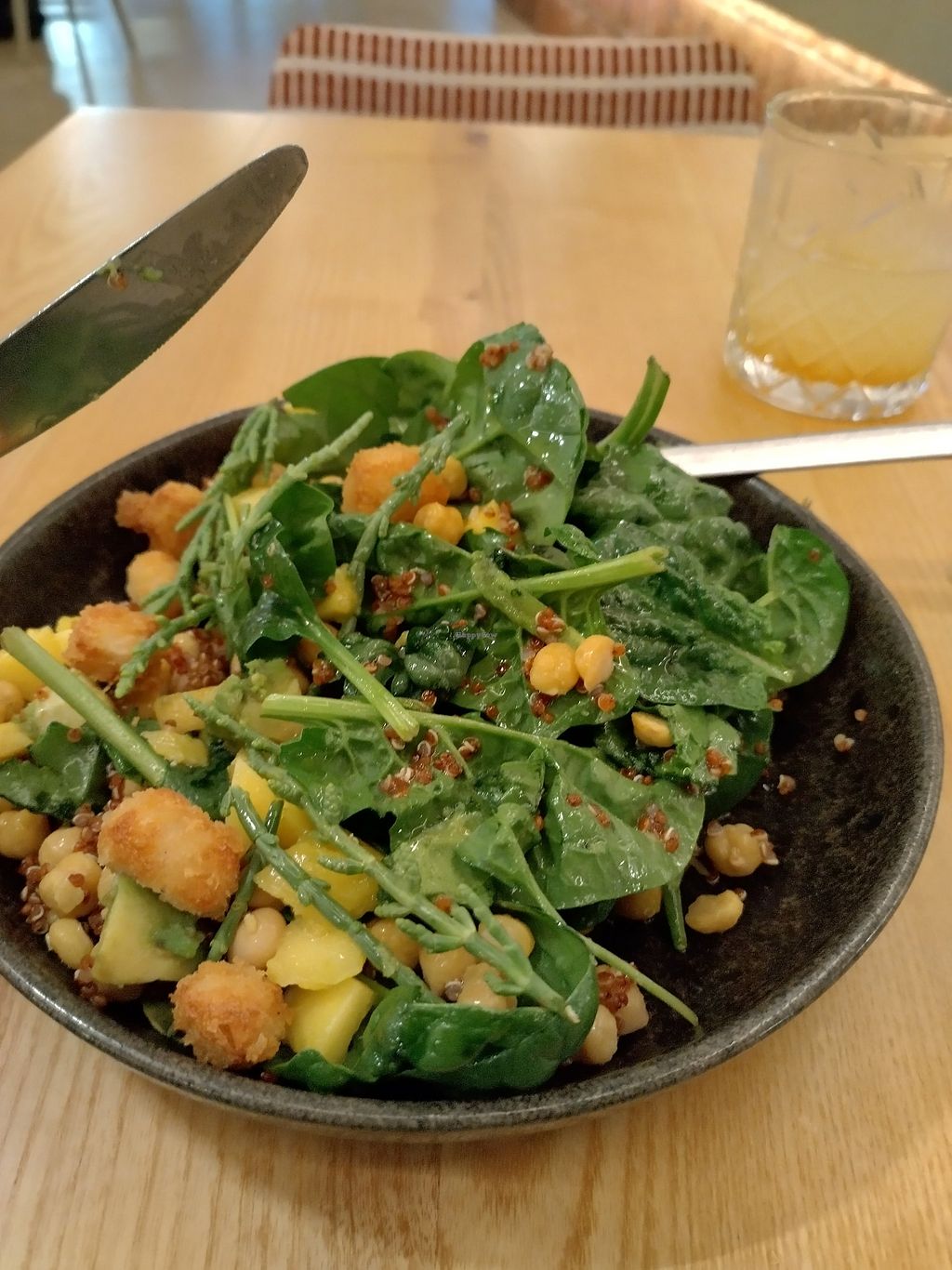 This used to be a buffet restaurant that was a highlight of the Porto vegan scene. Sadly they seem to have moved away from the buffet style and now have a standard menu, but everything was delicious. We split the hummus starter (served with just a small bit of popadom - not nearly enough for the amount of dip, we had to order extra focaccia!) and the green salad with mango, avocado, chickpeas, and crispy tofu. Healthy and satisfying lunch in a super convenient location. The service was a bit slow but the staff was friendly.