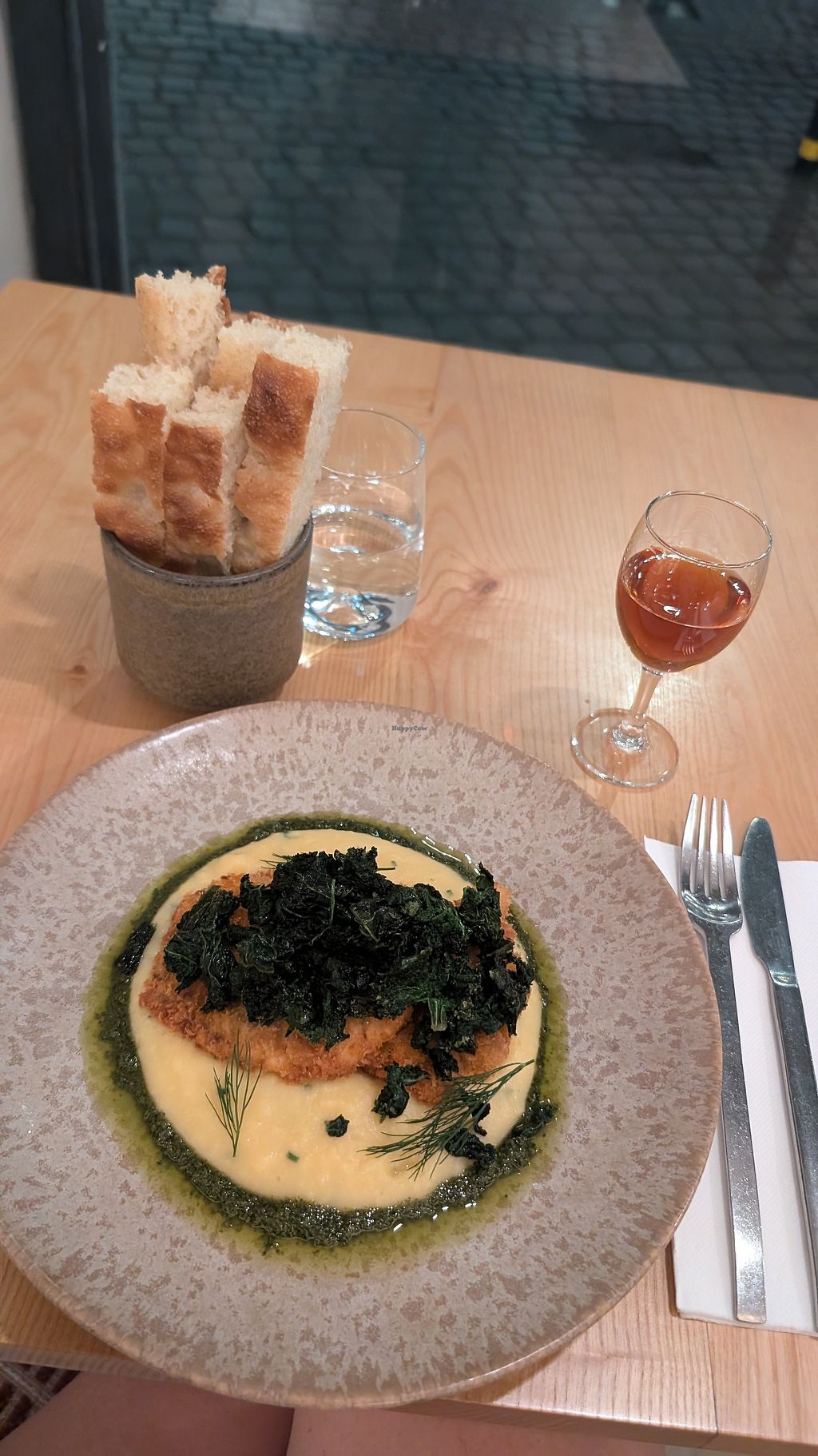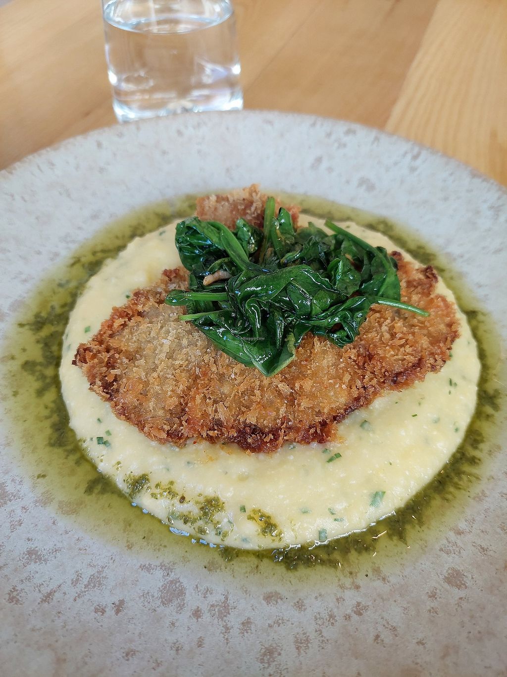 Fully vegan menu, calm atmosphere and great location. I had the mushroom katsu, on corn puree and with kale, which was deliciously crispy and tender and looked quite fancy.