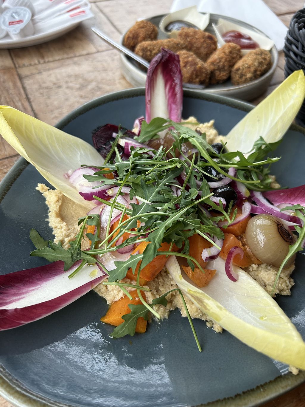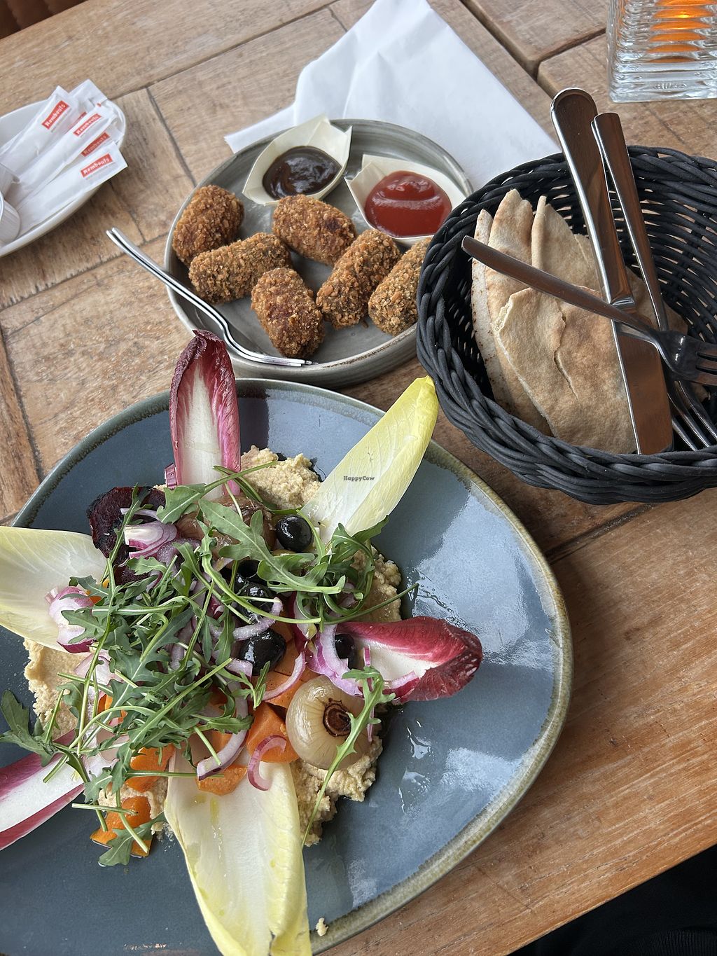 The main dish was really good!! The salad leaves very bitter, but that's typical. The hummus as well as the pickled veggies were incredible, the bread on the other hand shouldn't have been toasted. I prefer it soft.