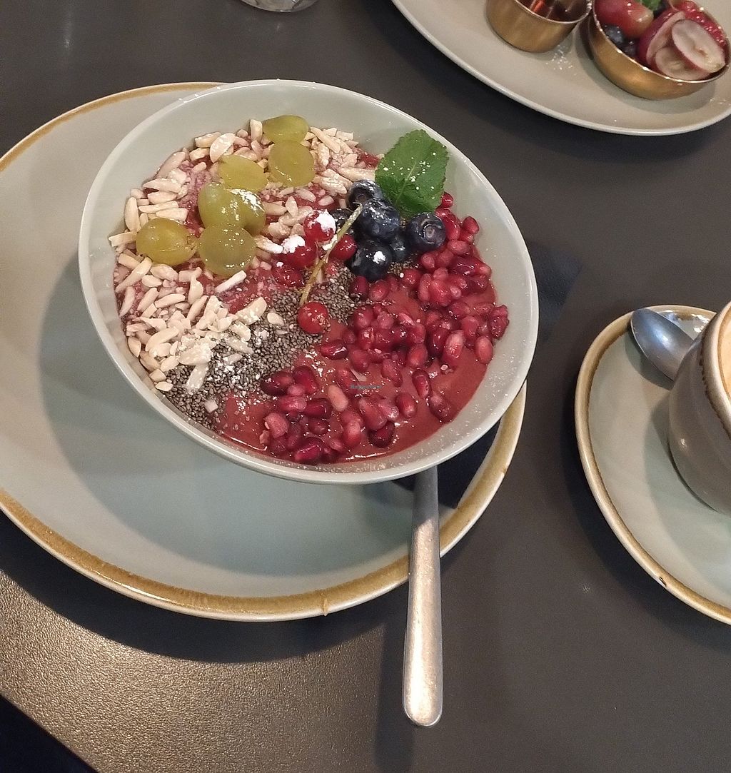 Beautiful cafe all green and grey, very clean, friendly service, very fast in bringing your order to your table. I ordered a smoothie Bowl and vegan pancakes. Both great, huge portions and fair prices. Absolutely recommend it.