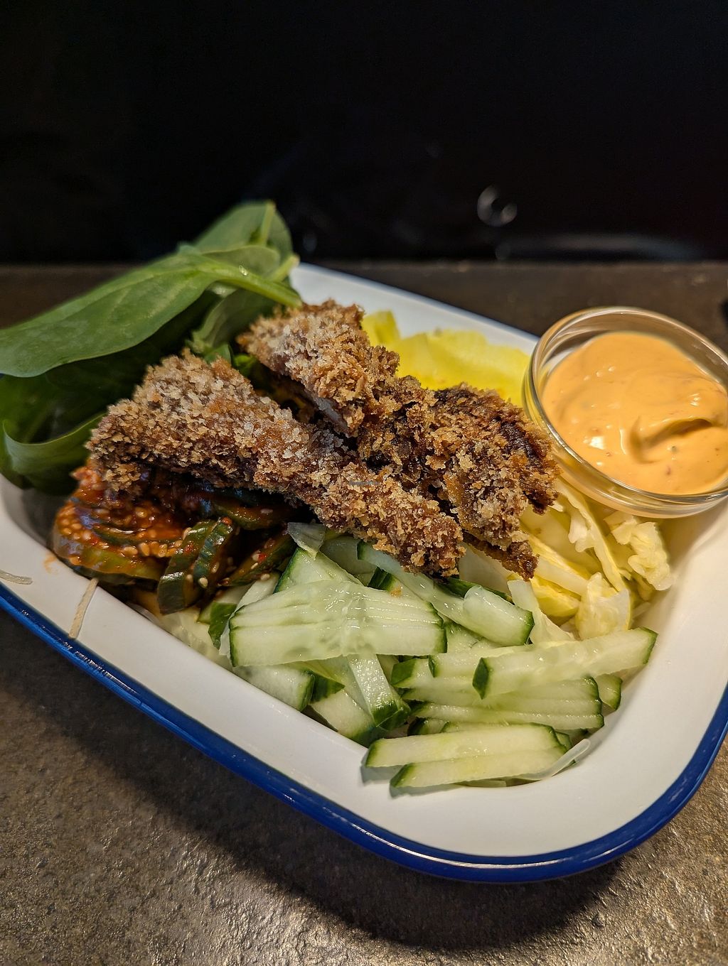 Haven‘t been there in a while, but used to live close by. It used to be super cheap for amazing quality. Like everywhere else, times change and it got a bit more pricey. We had the No-Chicken Burger and the Currywurst. Both were more than solid, but what‘s left is the homecooked flavor that it used to have. I can recommend the wraps and bowls but not such the Burgers anymore. Coleslaw for the win though.