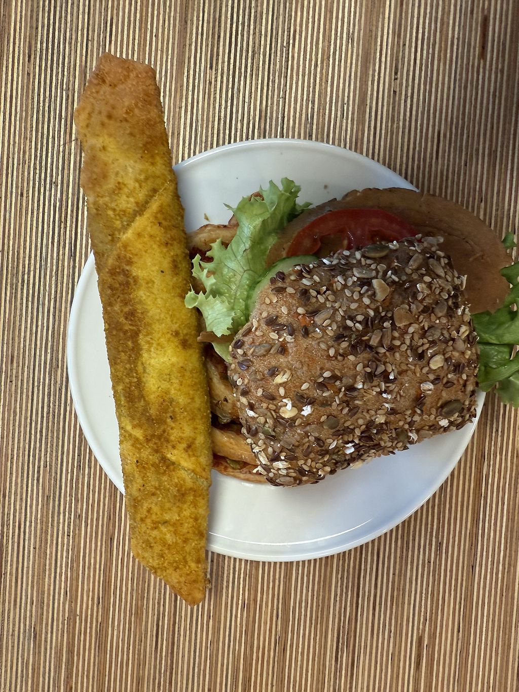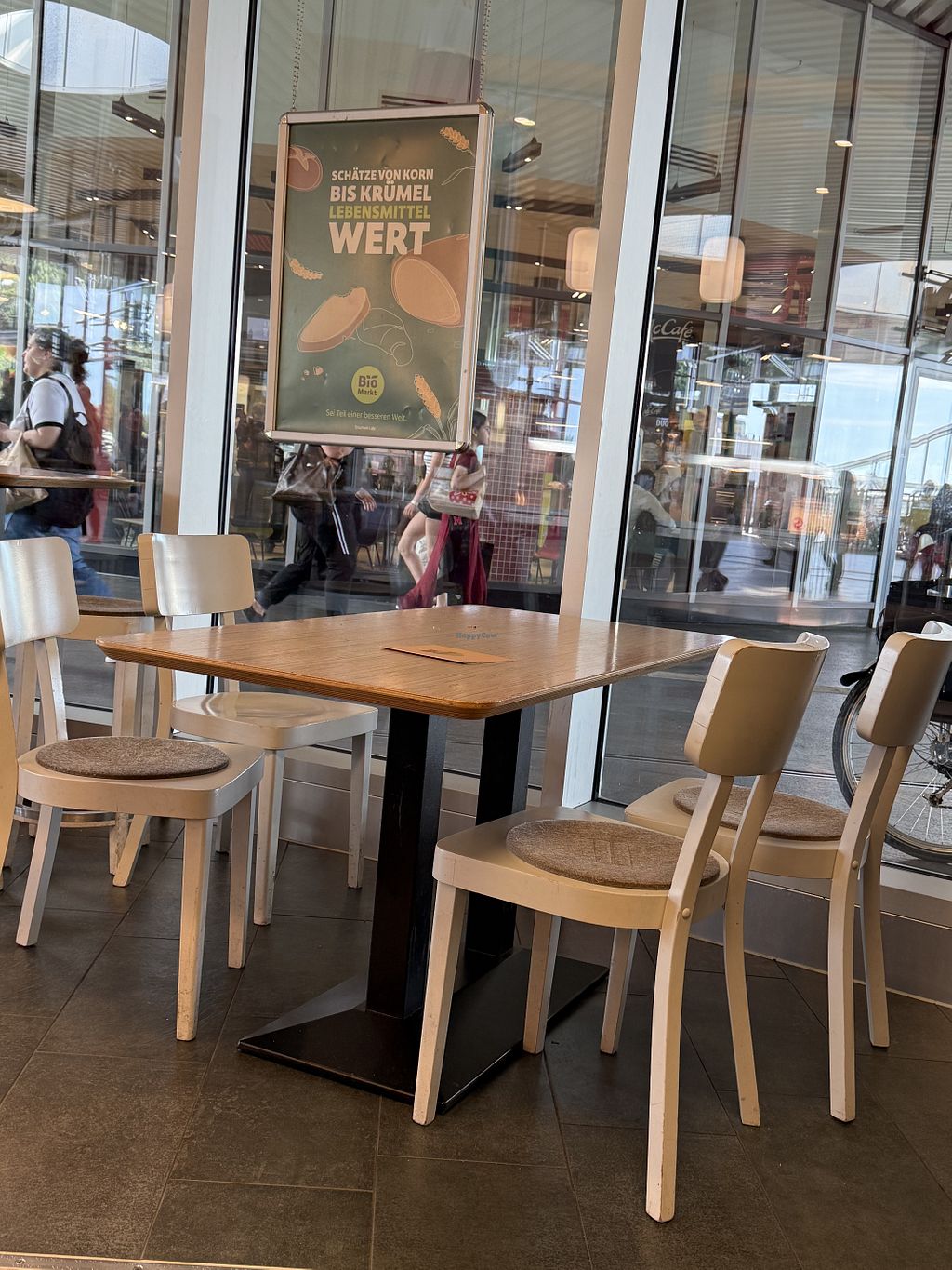 They have everything from juice to cookis, wine, noodle, nut bars, a bakery, one (very often vegan) lunch dish, bread, veggies, i.e. a fill supermarket. Vegan clearly labeled. At large train station 'Gesundbrunnen' but at daylight area. Nice seats (twenty) on actual tables, so salad, sozp & snacking can be done with real cutlery without throw-away items. Sadly, often the 'dish of the day' is animal only.