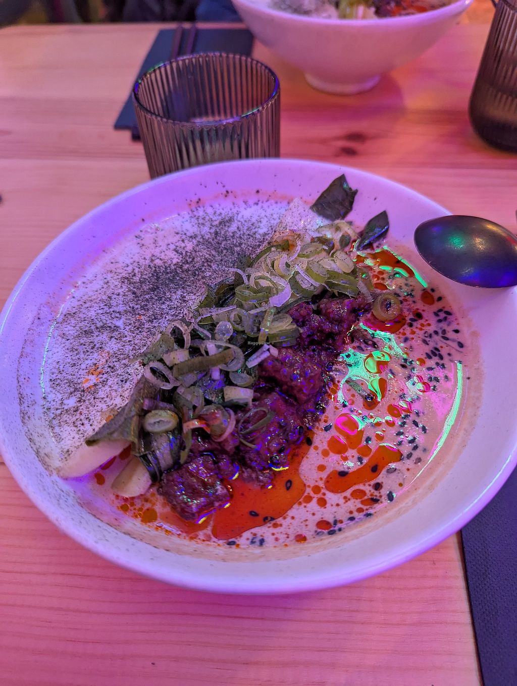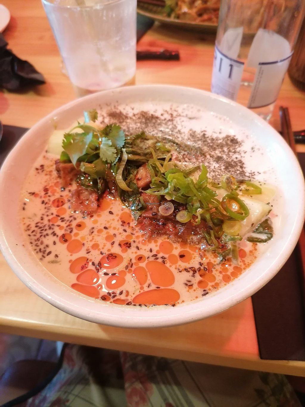 The ramen was one of the best I've had, the only downside was that it was slightly oily, but in hindsight I think it was chilli oil. The spiciness took me by surprise (it is mild-hot) and gave me the sniffles, but really was a welcome addition to the dish. The firm tofu gave it that "meatiness" and was full of flavor. The pak choi was a "filler" item so was nothing special, and I did not notice the nori. The broth with the spiciness, worked great with the creaminess of the coconut milk.