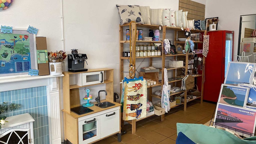 Fantastic cafe and shop - such a gem!!! The shop sells a wonderful selection of quality products by people based locally, mostly in Devon. As well as this gorgeous shop it’s also a cafe serving teas coffees and cakes - delicious cakes - usually at least one cake is vegan, plant milk available.