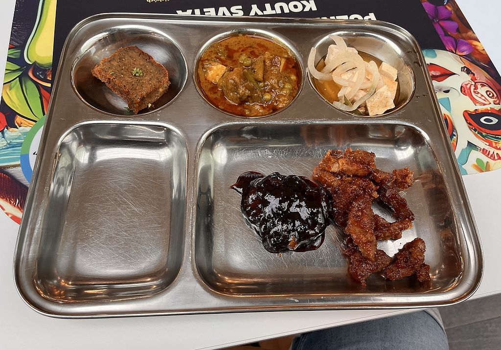 Not fully vegan but mámy vegan options. Food is tasty just the price is quite High because of the weight.