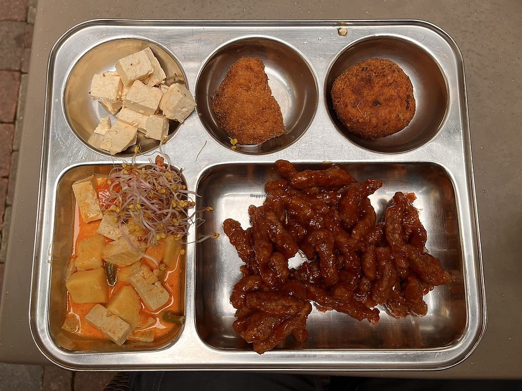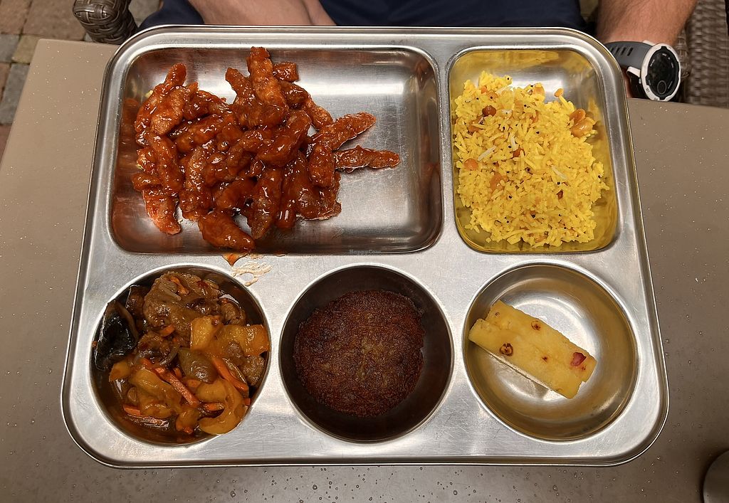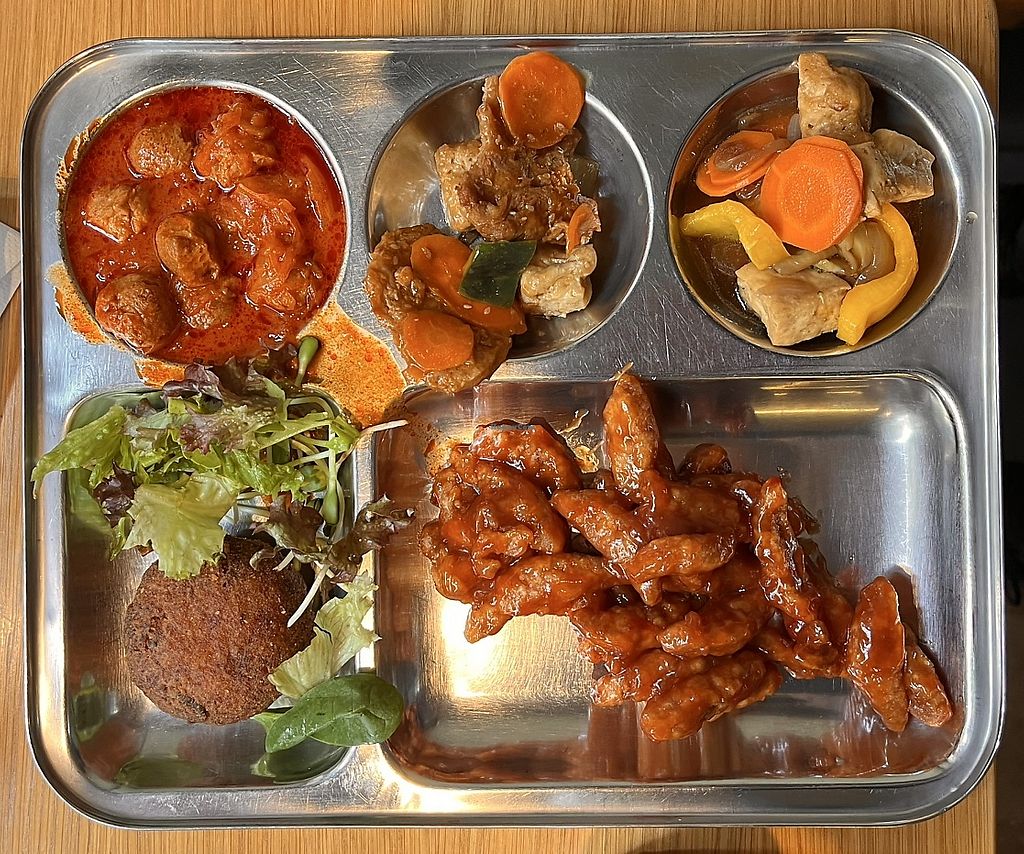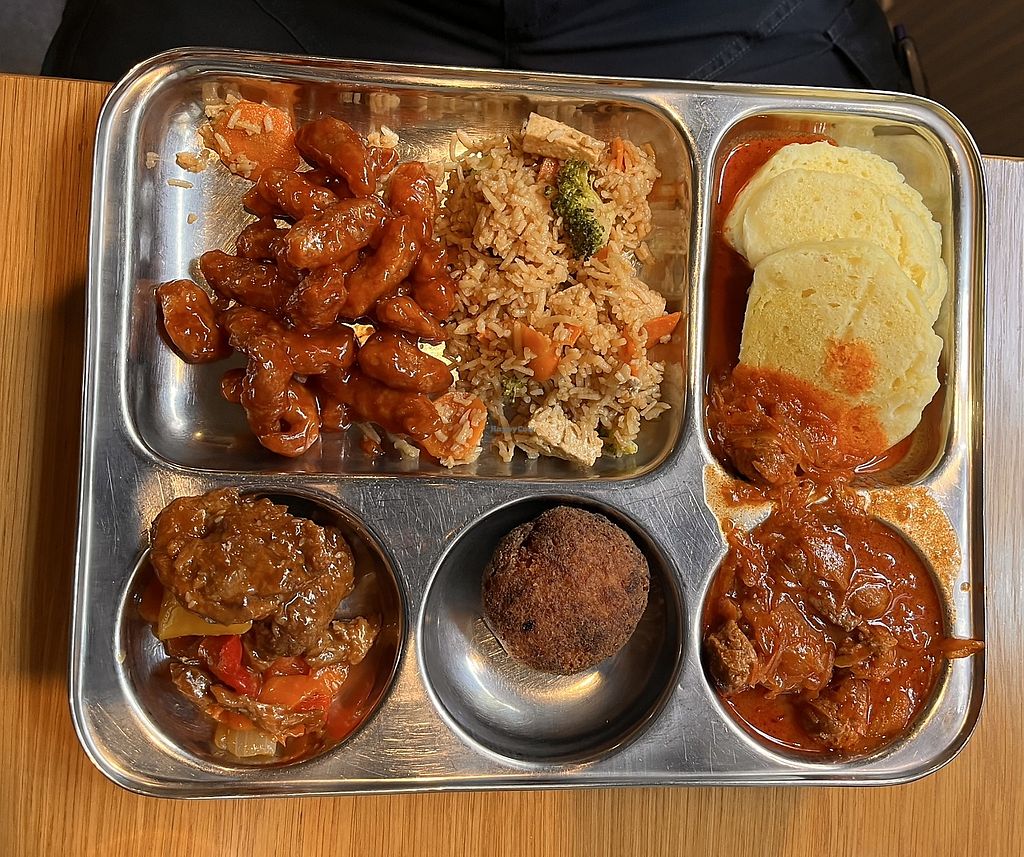 My partner and I did the lunch buffet and it was packed with vegan items (marked with a white flower on the label). We had a great time trying everything and we both particularly liked the deep fried vegan protein in sweet and sour sauce.