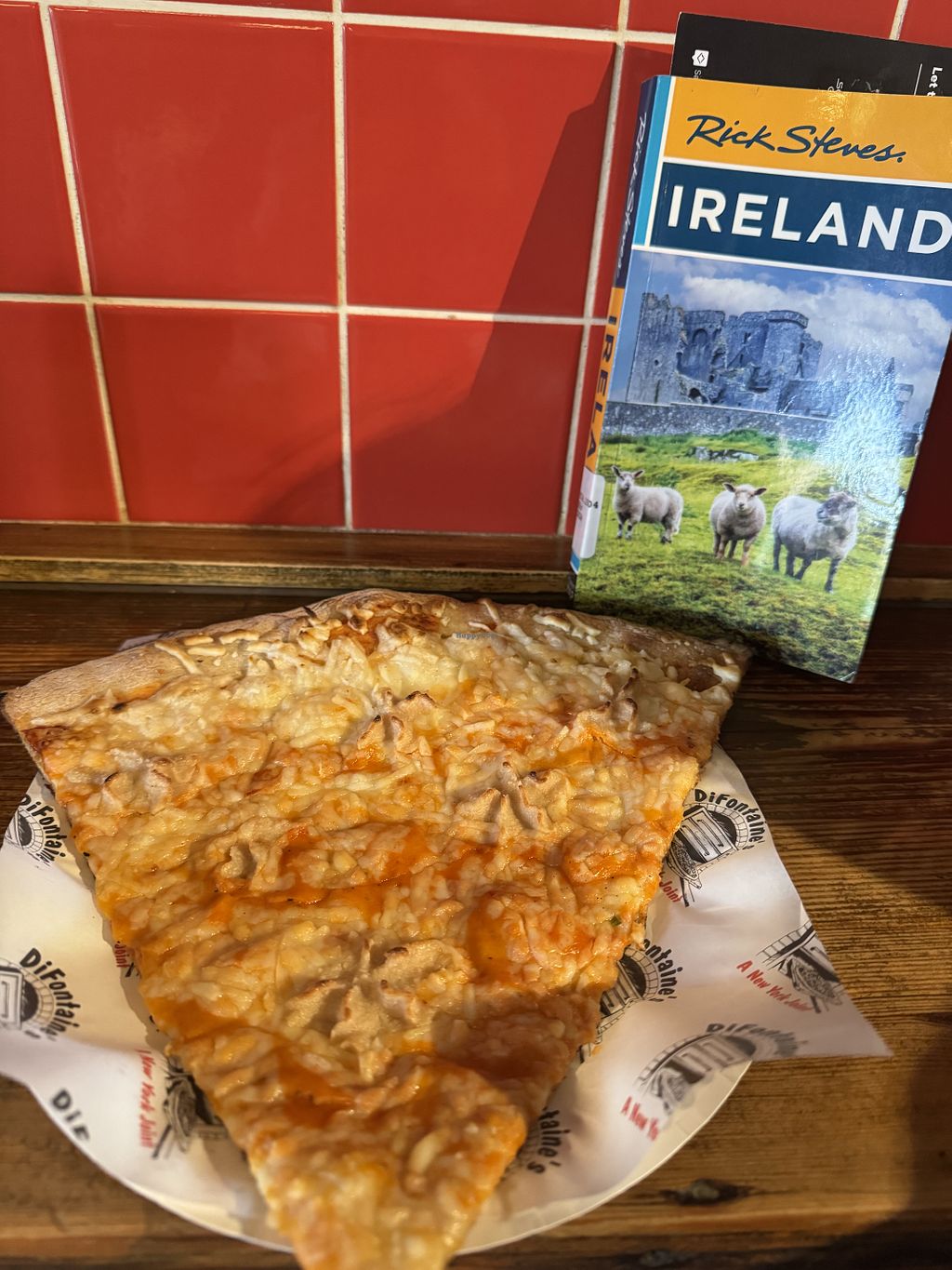 Ok, I didn't actually travel all that way *just* for NY pizza but ... I was pleasantly surprised when I accidentally came across DiFontaine's, just north of the River Liffey. This Brooklyn boy sees "NY style pizza" and well, I stop in my tracks!!! I was just visiting the Dublin area for the first time and hadn't realized how vegan friendly Dublin can be so I didn't expect them to have vegan options. Thankfully, I was mistaken, they had a couple of different types of vegan slices.