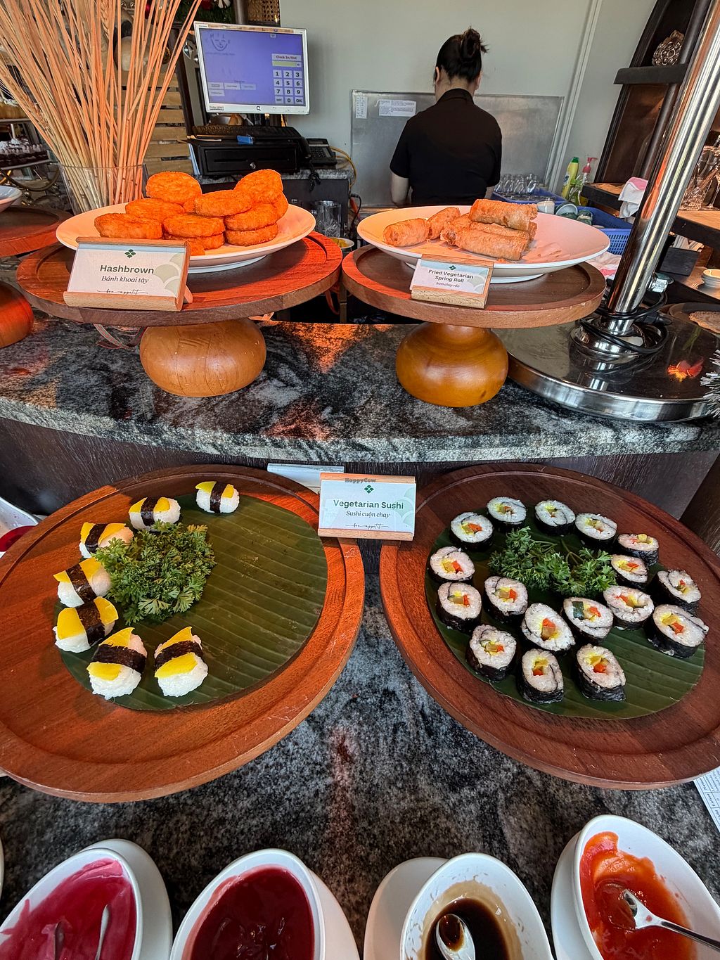 We stayed at this hotel for two nights, and the breakfast buffet was included. When we arrived, the staff immediately asked if we had any food restrictions, which I really appreciated. The next morning at breakfast, they had several vegan options, including a clearly marked vegan pho listed right on the menu. There were also a few vegan salads, appetizers, fresh fruit, and a variety of fruit juices. Overall, it was an easy and enjoyable experience for a vegan traveler.