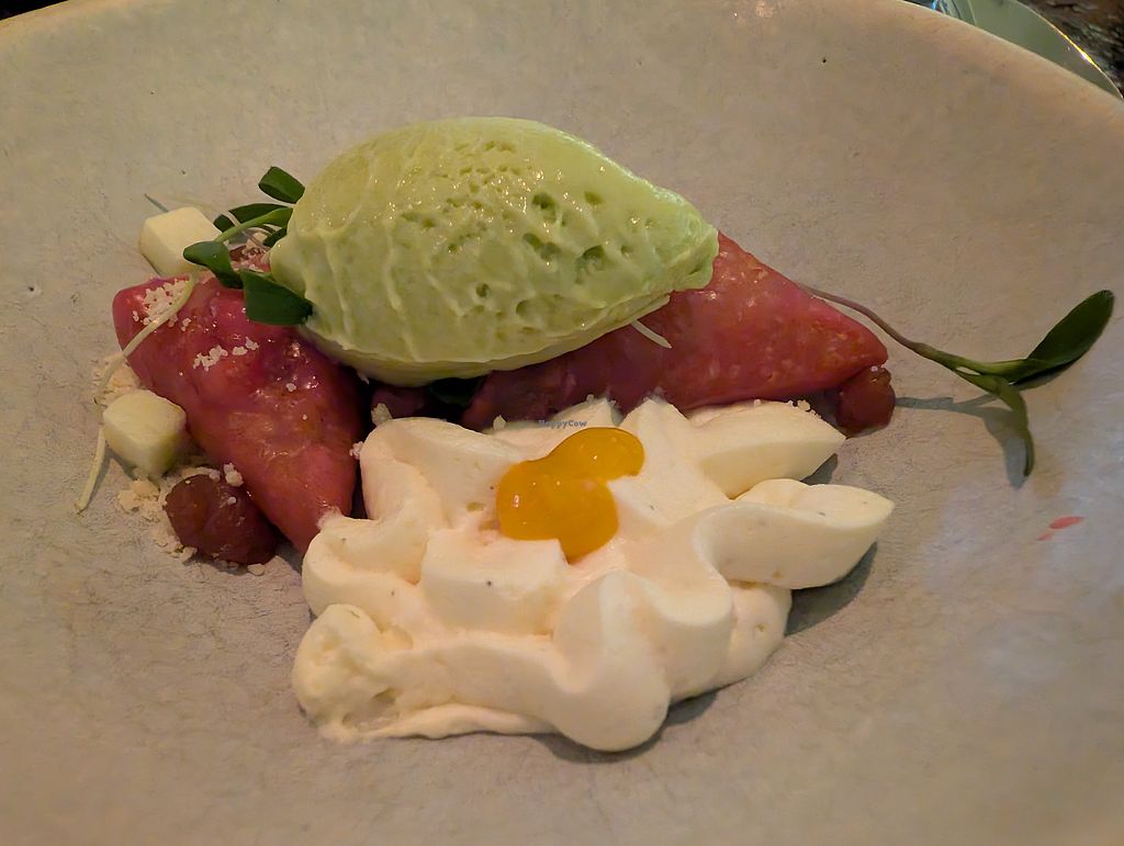 Read moreThe amoush bouche was potentially the best plate of the night- a mind bendingly good carrot ice cream waffle cone filled with creamy cheese and topped with vegan caviar.
