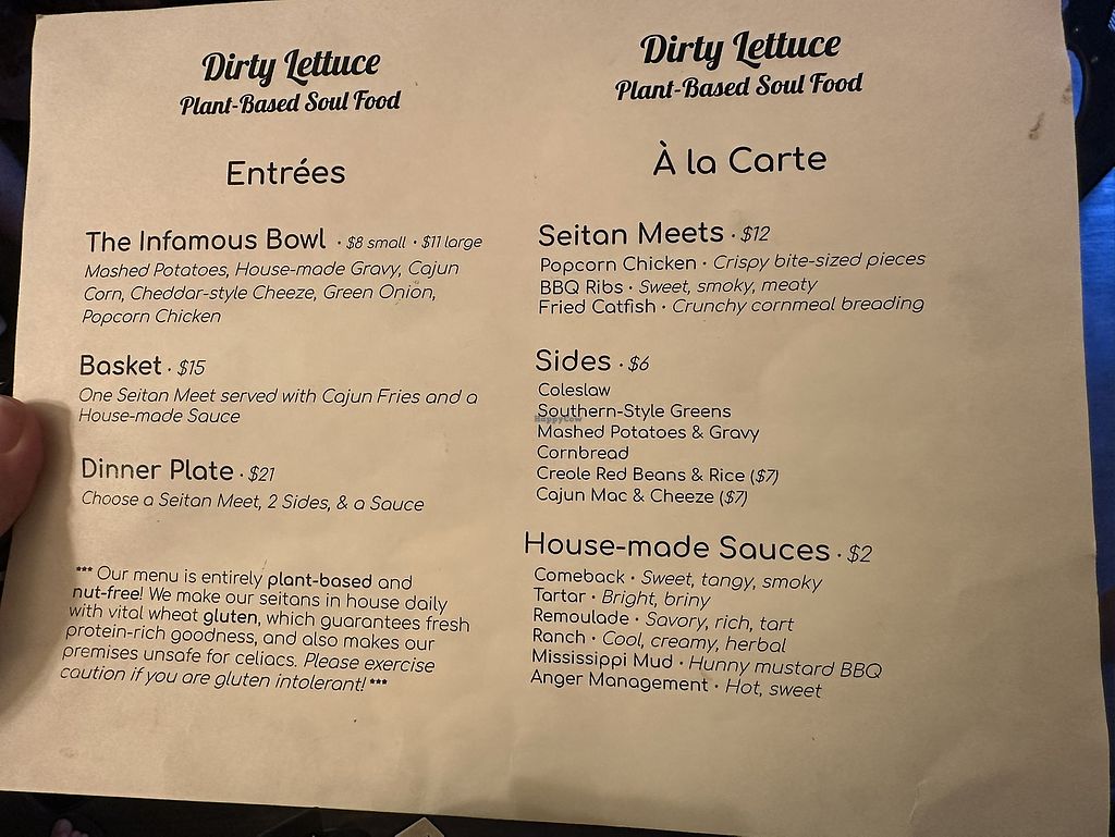 Delicious, fresh southern food at Dirty Lettuce. Big bonus that it is 100% tree nut and peanut free, one of my family members is highly allergic. The service was so friendly and warm. Great non-alcoholic beverages and delicious food! It was blazing hot outside and we really appreciated the air conditioning.