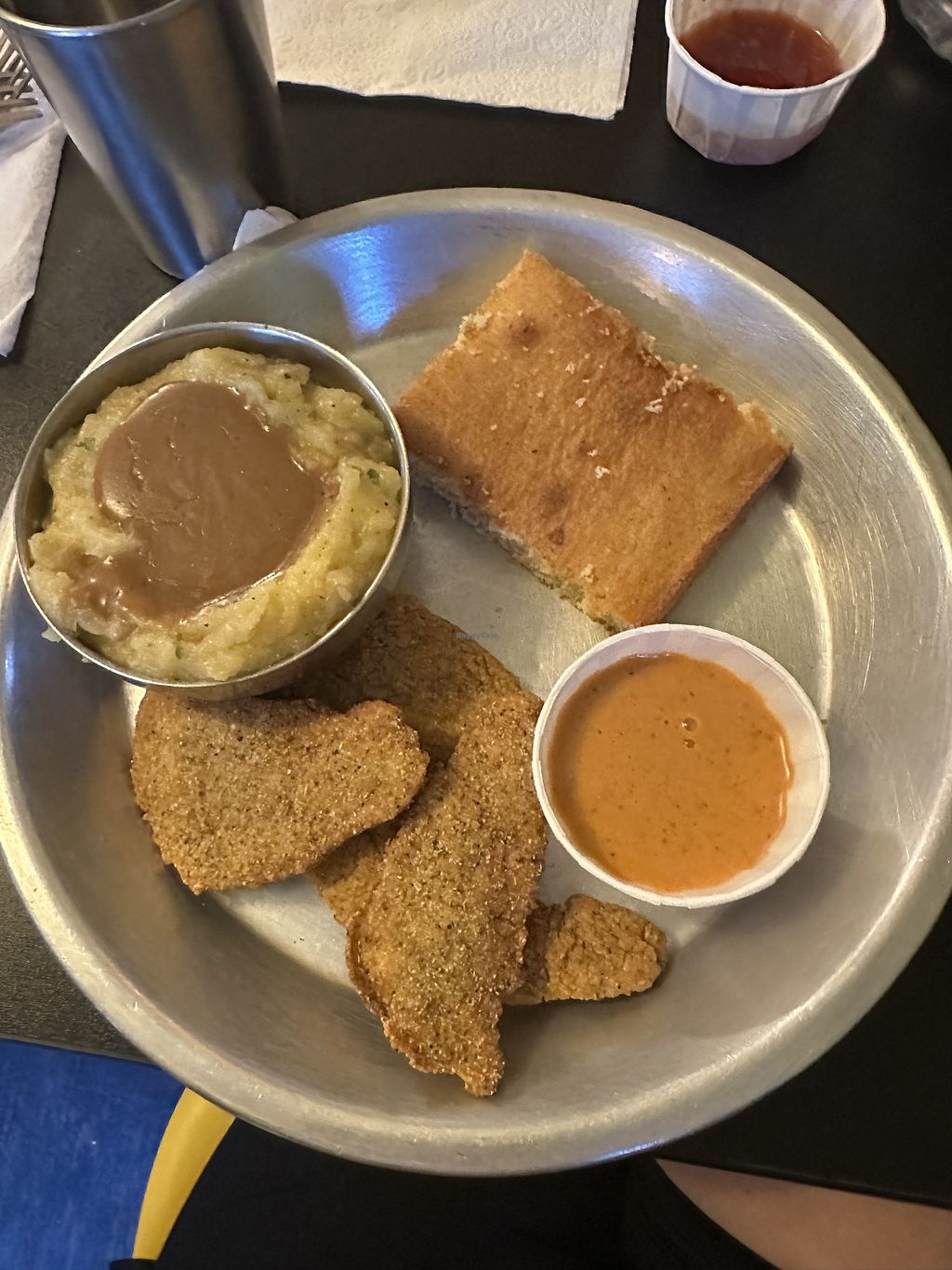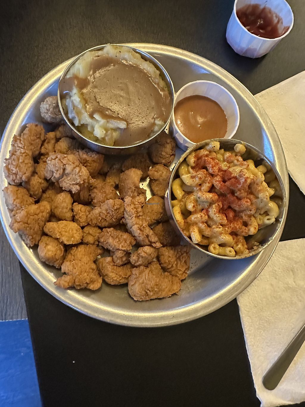 food is fabulous, portions are quite large if you order a plate so just be aware. I love the vegan chicken and mashed potatoes here