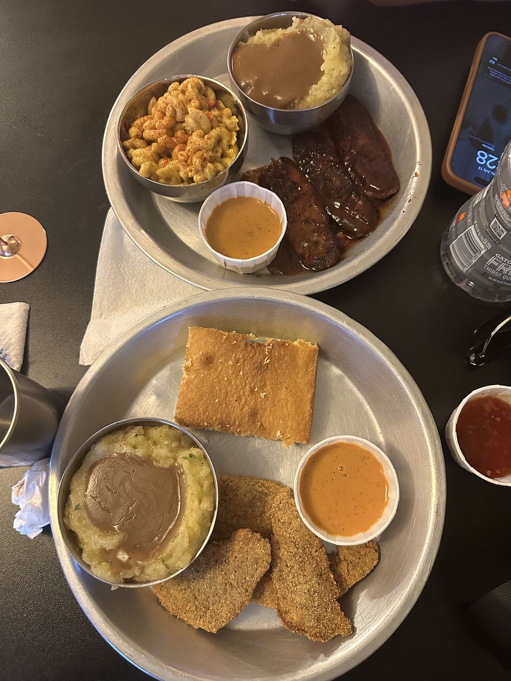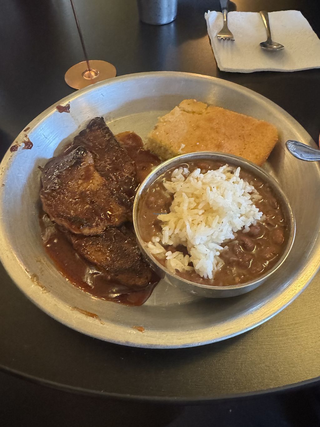 I haven’t been here for years and was shocked that it’s just as good as I remember. The fried pickles stole the show. Mac and cheese was really just a lackluster macaroni salad, I’d recommend skipping that. Catfish and bbq ribs are killer. #Veganuary