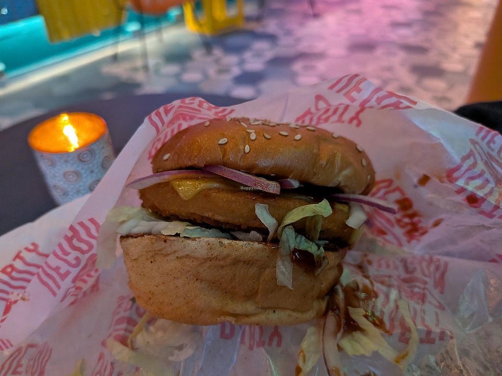 Visited Oslo last week and found this place using the app. They have a lot to choose from - wraps, burgers, fries, onion rings, chili cheese bites. (jalapeño poppers) etc. And you can sort of create it how you want it. The first day I got the "chicken" and the chili cheese bites. They were so good. It's located inside a building called Barcode Street Food. There's lots of different food stands inside and a large bar in the middle where you order your drink. (They have soda etc, not just alcohol.) It can get crowded at times, especially at night. The staff were very friendly. An overall positive experience.