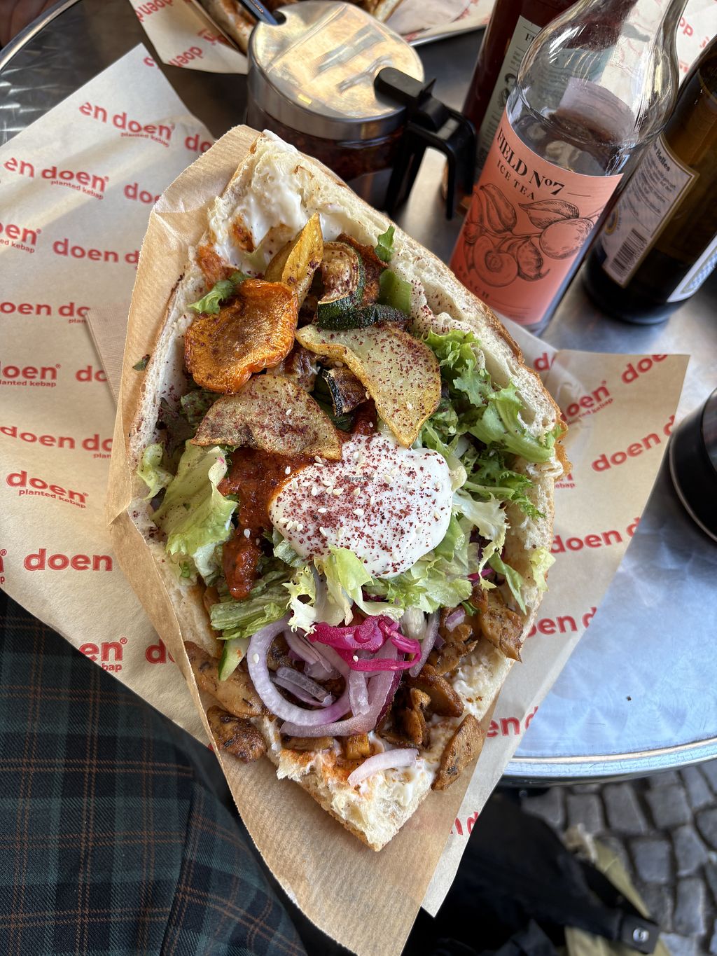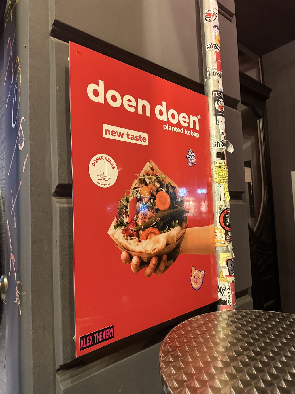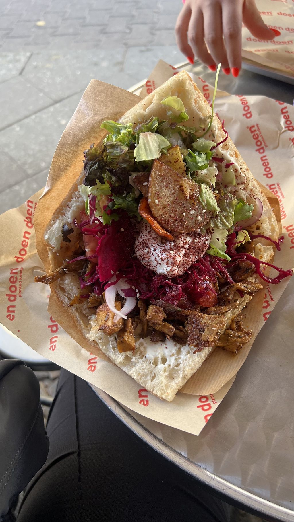 Doen Doen Kebab is a really nice vegan kebab spot. The kebabs are great, with potatoes and veggies you don’t usually find in a döner. The bread is tasty and the sauces are excellent, everything comes together perfectly. Definitely recommended for a quick, delicious vegan bite!
