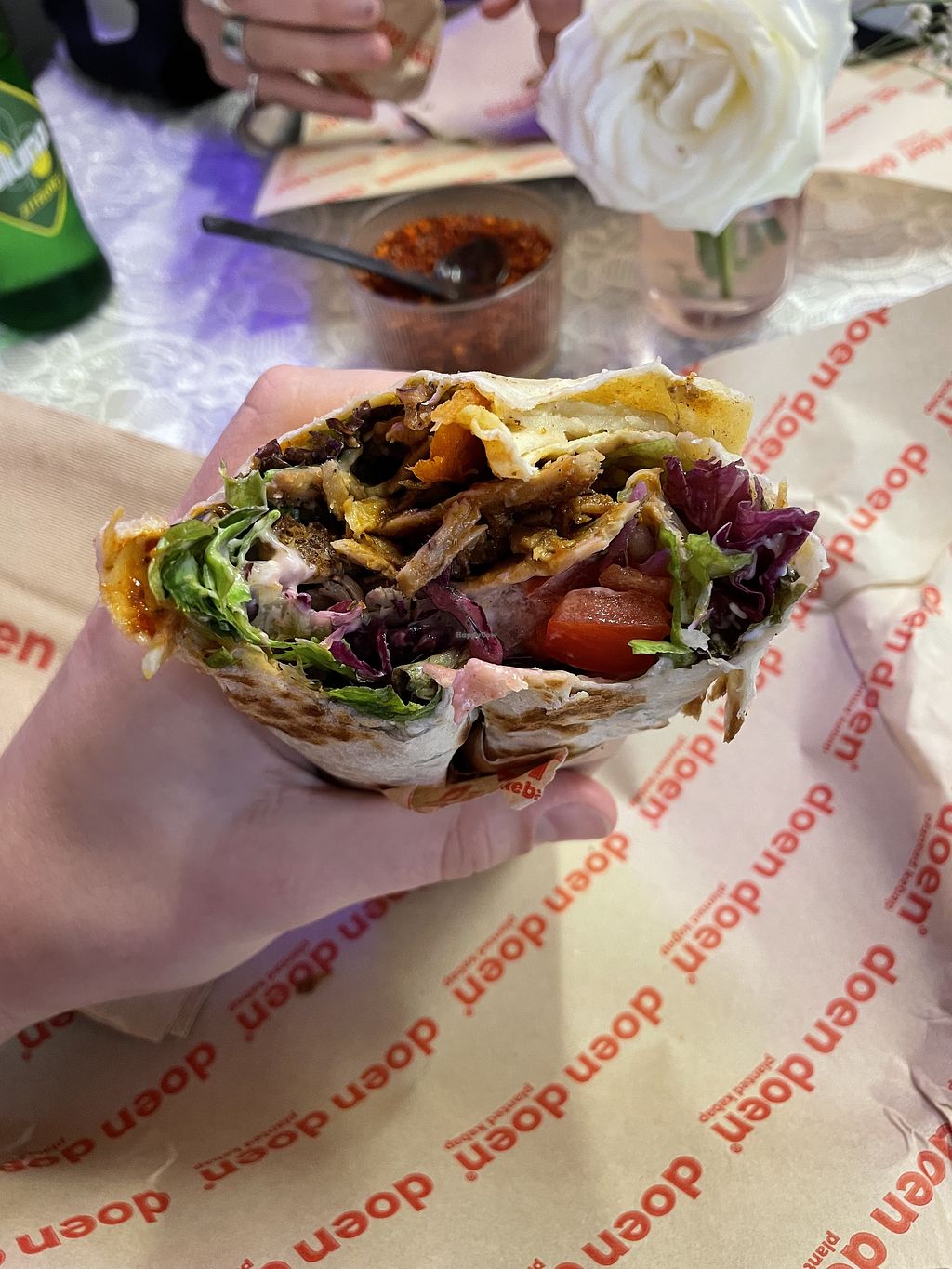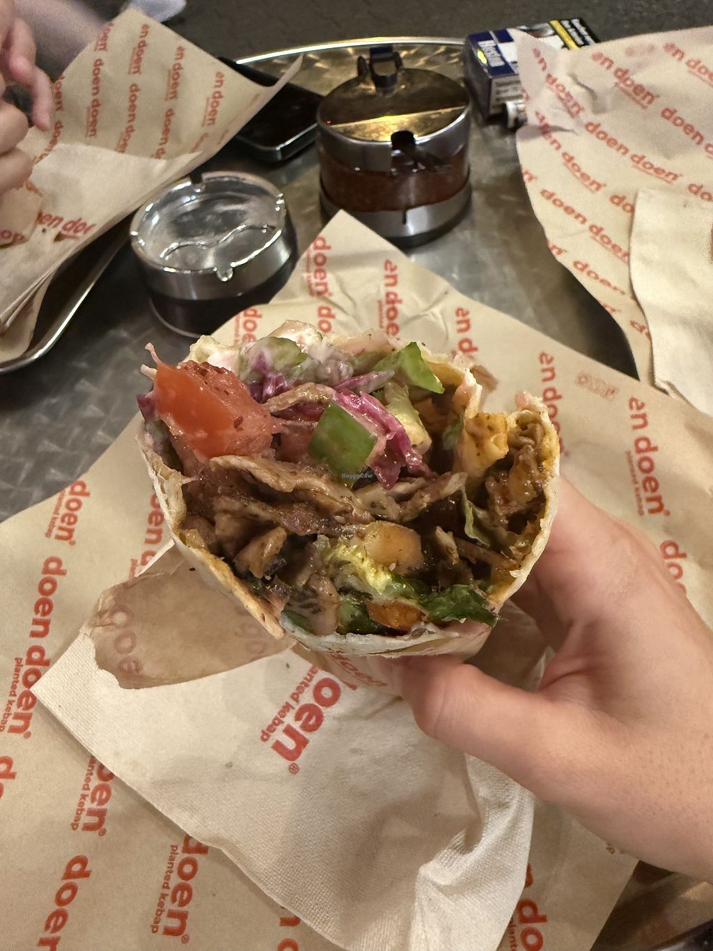 This is by far the best kebab I've ever had. Everything is vegan and amazing. We tried the doen doen original and it was huge and tasted like real kebab. 100% would come back