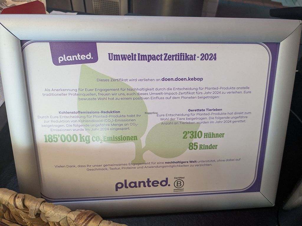 Voll veganer Betrieb, mit klassischer Auswahl (einzig Lahmacun ist nich vorhanden). „Fleisch“ erhältlich in „klassisch“ und „chicken“ (beides von der Marke „planted“). Wir hatten ein Yufka und einen Döner mit klassischem Fleisch und beide waren absolut zufriedenstellend. Dad Dönerbrot war stark, schön kross ohne dabei zu trocken zu sein. Mitarbeiter vor Ort war zudem unglaublich nett. Card only