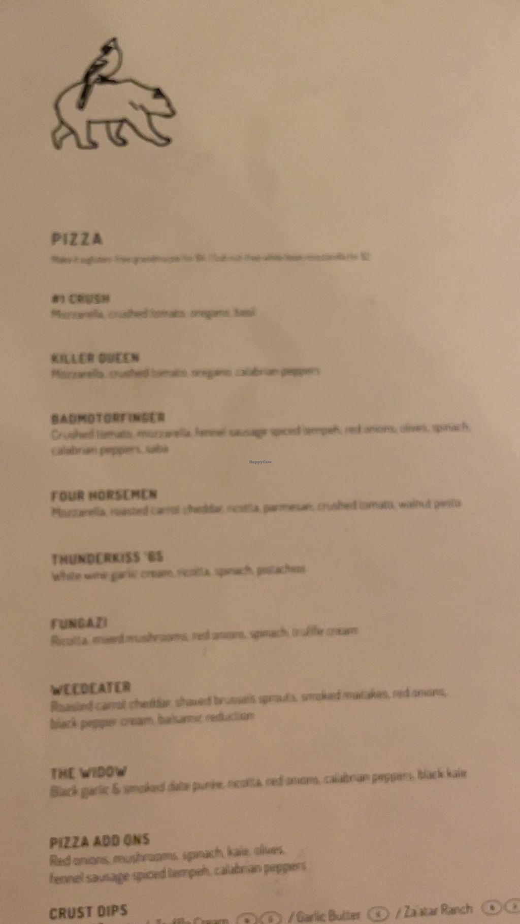 Been to Donna Jean’s numerous times. Tried the Badmottofinger, Fungazi, The Widow, Four Horseman & Thunderkiss 65. The favorite is Thunderkiss 65’ with added mushrooms. Delicious Vegan GF pizza! Highly recommend this restaurant!! Great service & chefs cook with care. Fun merchandise for sale too (T-shirts). Recommend making reservations or ordering take out ahead of time because they are always packed with customers.