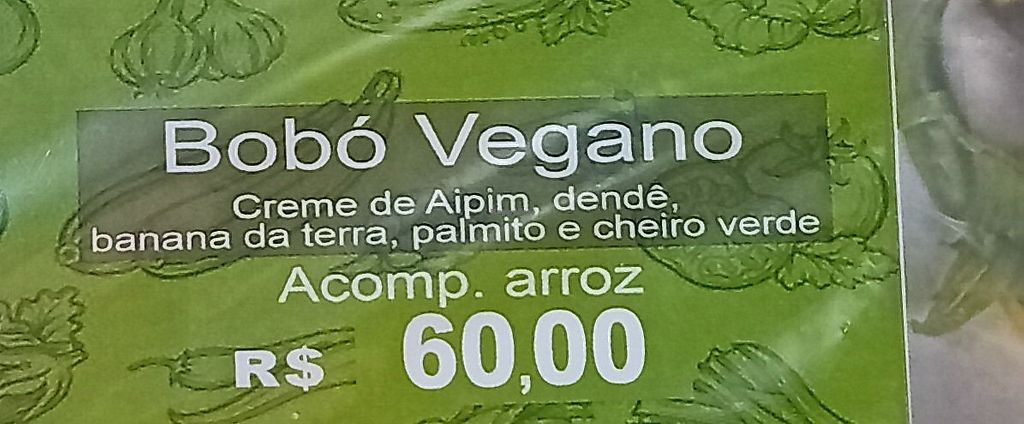 Serves meat, vegan options available. Restaurant offering a few vegan items such as bobo, moqueca and stroganoff. Open Mon-Sat 10:00am-9:00pm, Sun 10:00am-6:00pm.