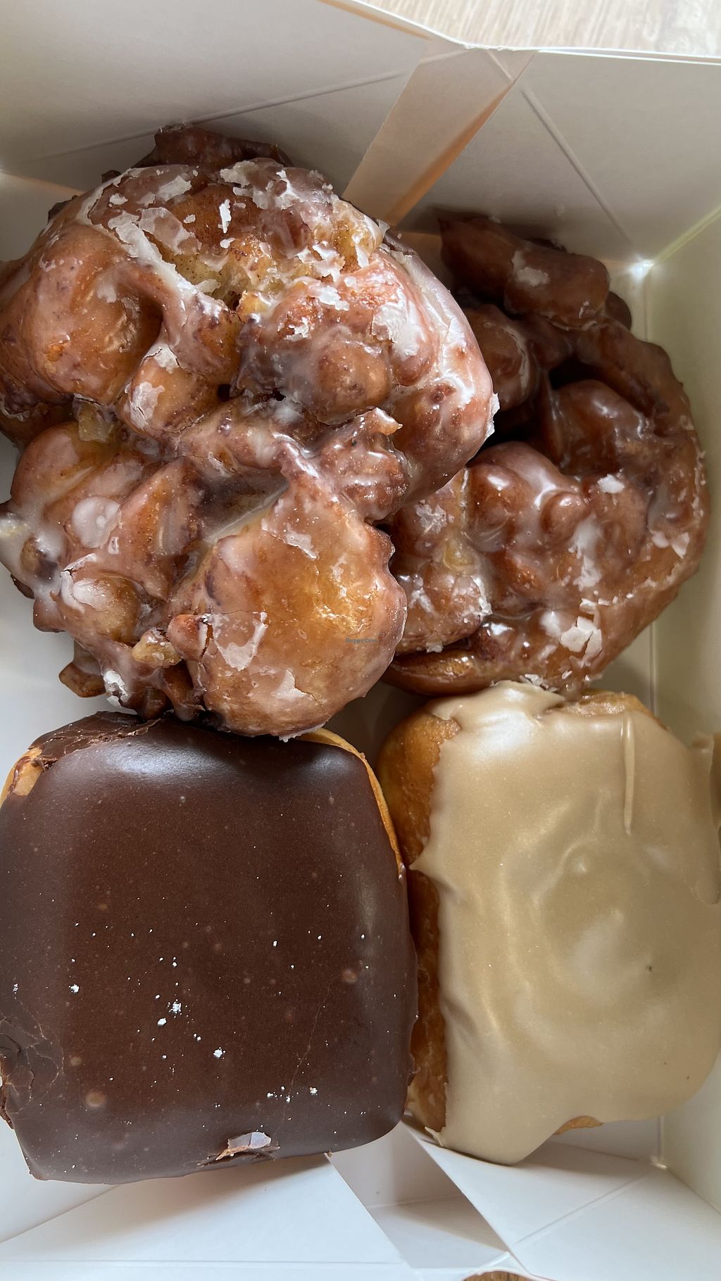 Their donuts and apple fritter are delicious. They cut their vegan donuts with a square cutter so there you know you aren’t mistakenly getting the wrong one.