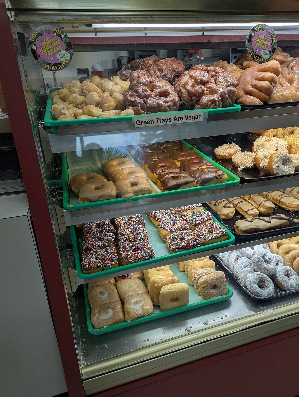 The vegan donuts are clearly displayed on green trays and the staff double checked that we wanted vegan only. They had a nice variety including donut holes!!