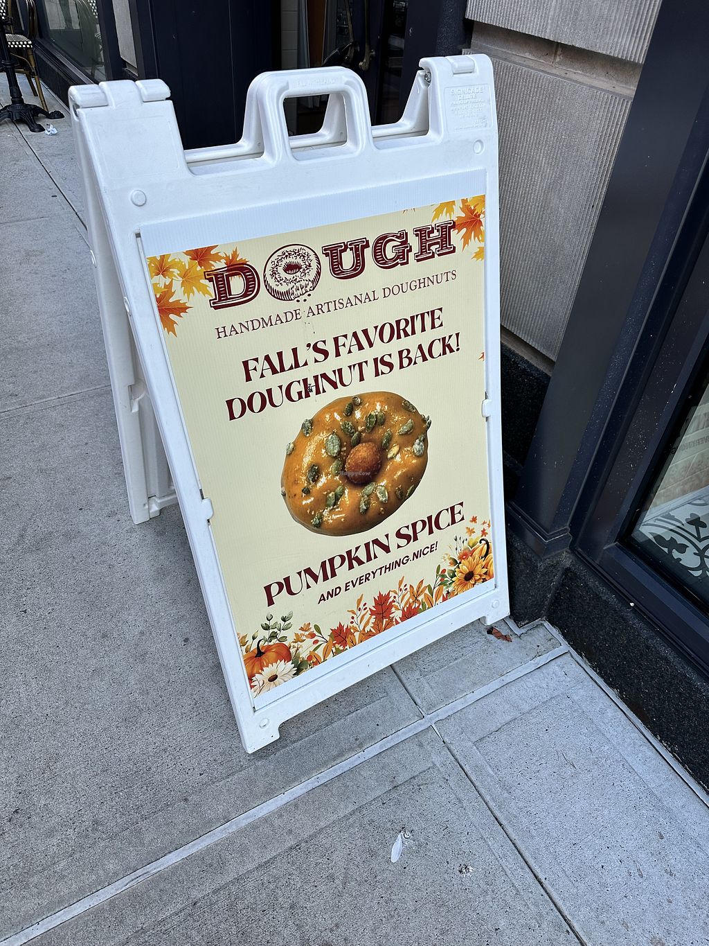 Dough Doughnuts has a few branches dotted across the city. This branch is for takeout only--no seating (though there is a place to stand and gulp your coffee and eat your doughnut) and no restroom.