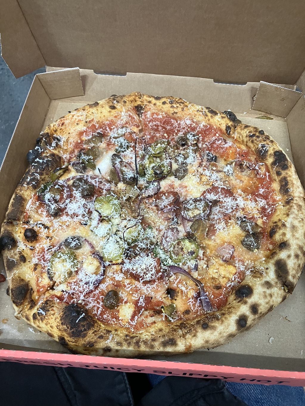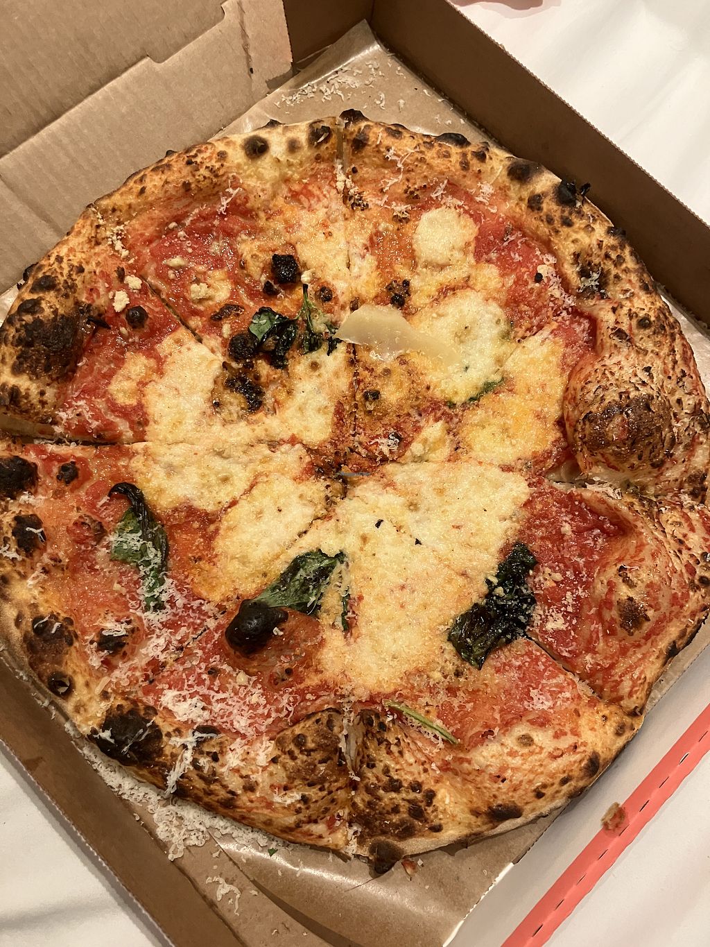 We got take out and appreciated how composed the pizzas were when they arrived to us.